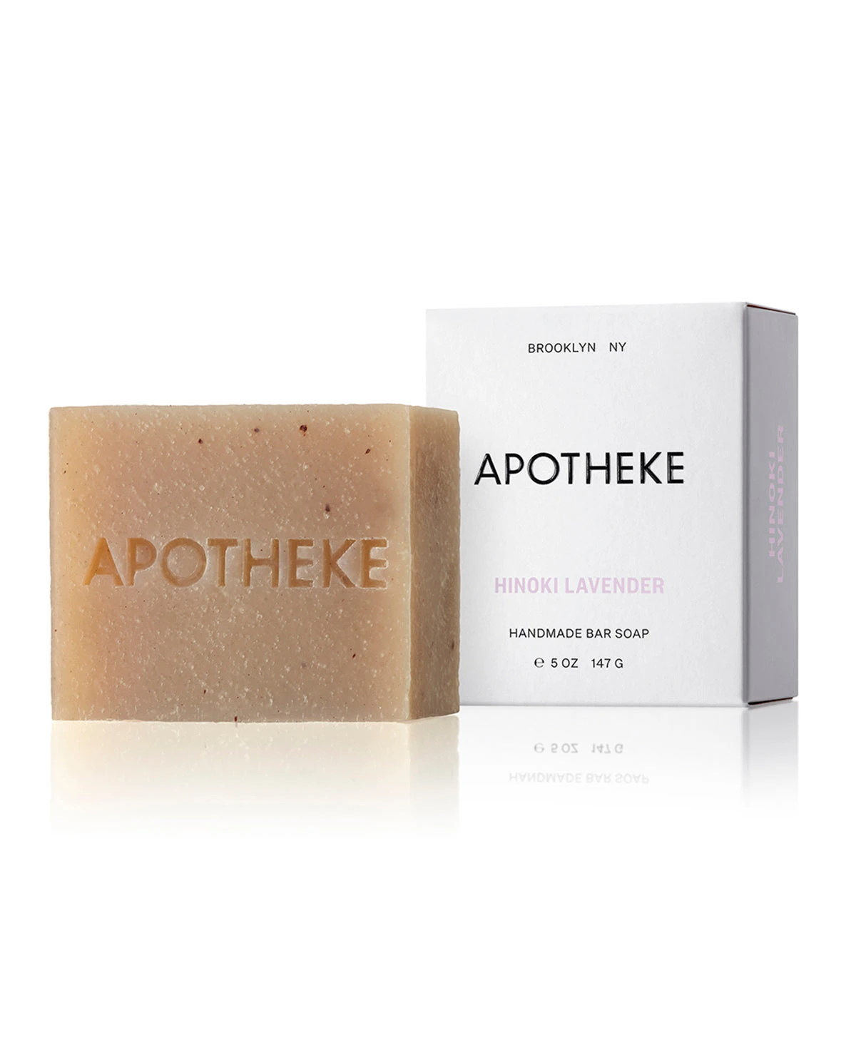 Made in Brooklyn, the Apotheke Hinoki Lavender collection beautifully blends rich, smoky notes of Hinoki cypress and fresh lavender, resulting in a soothing, earthy fragrance. The sleek and modern packaging is a welcome addition to any space.