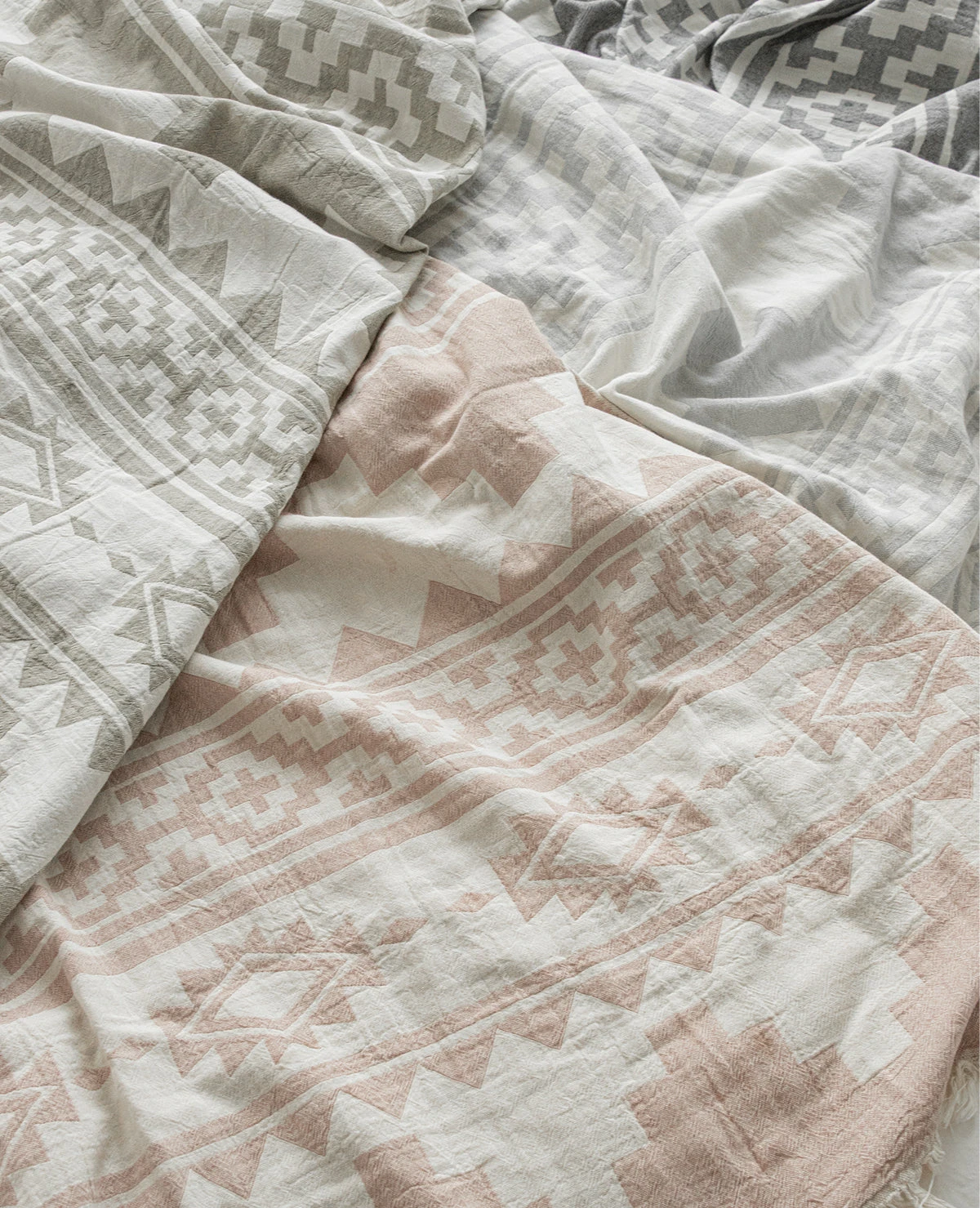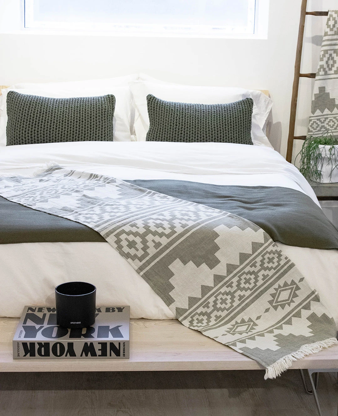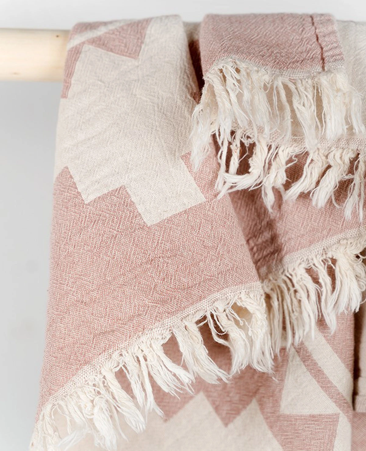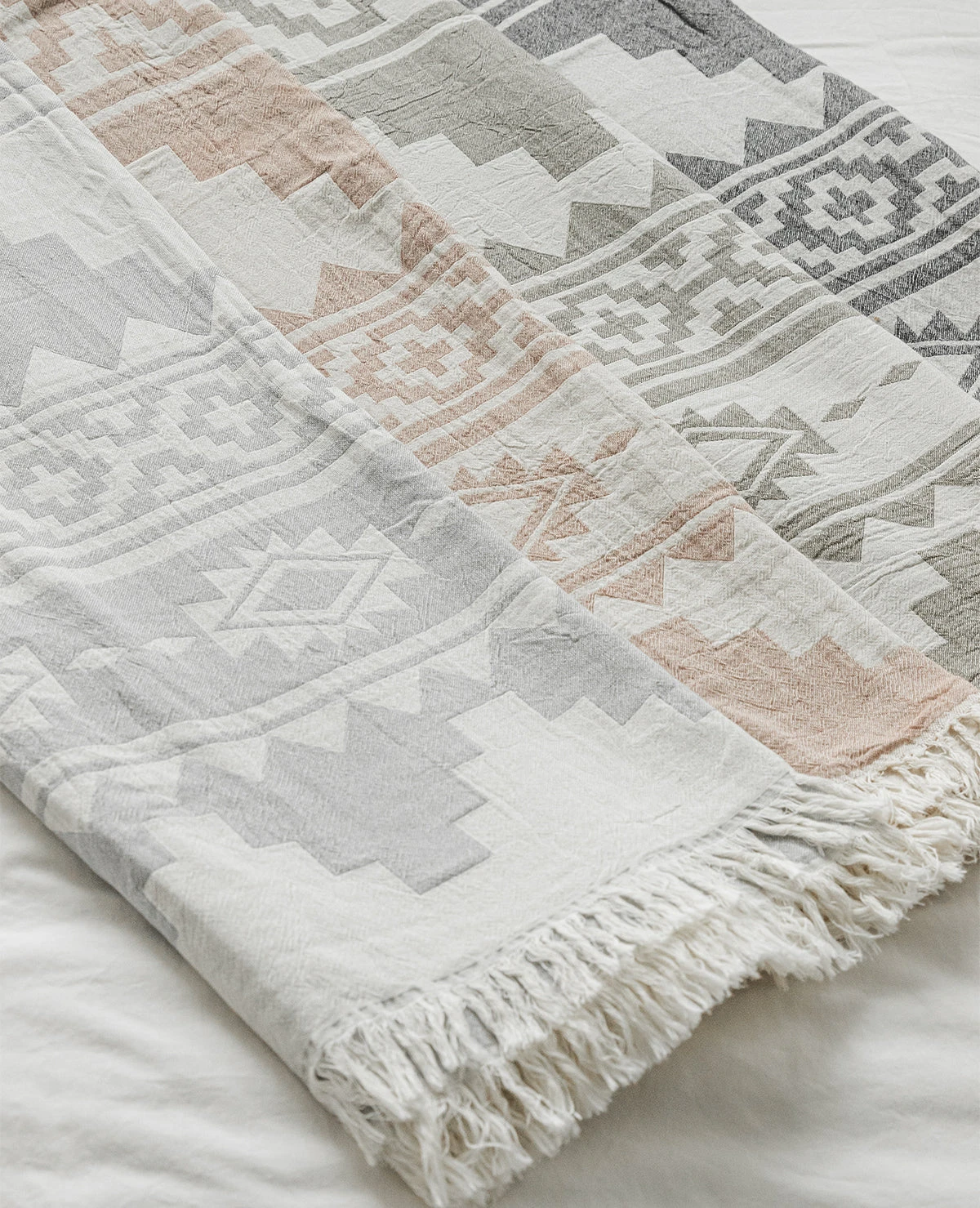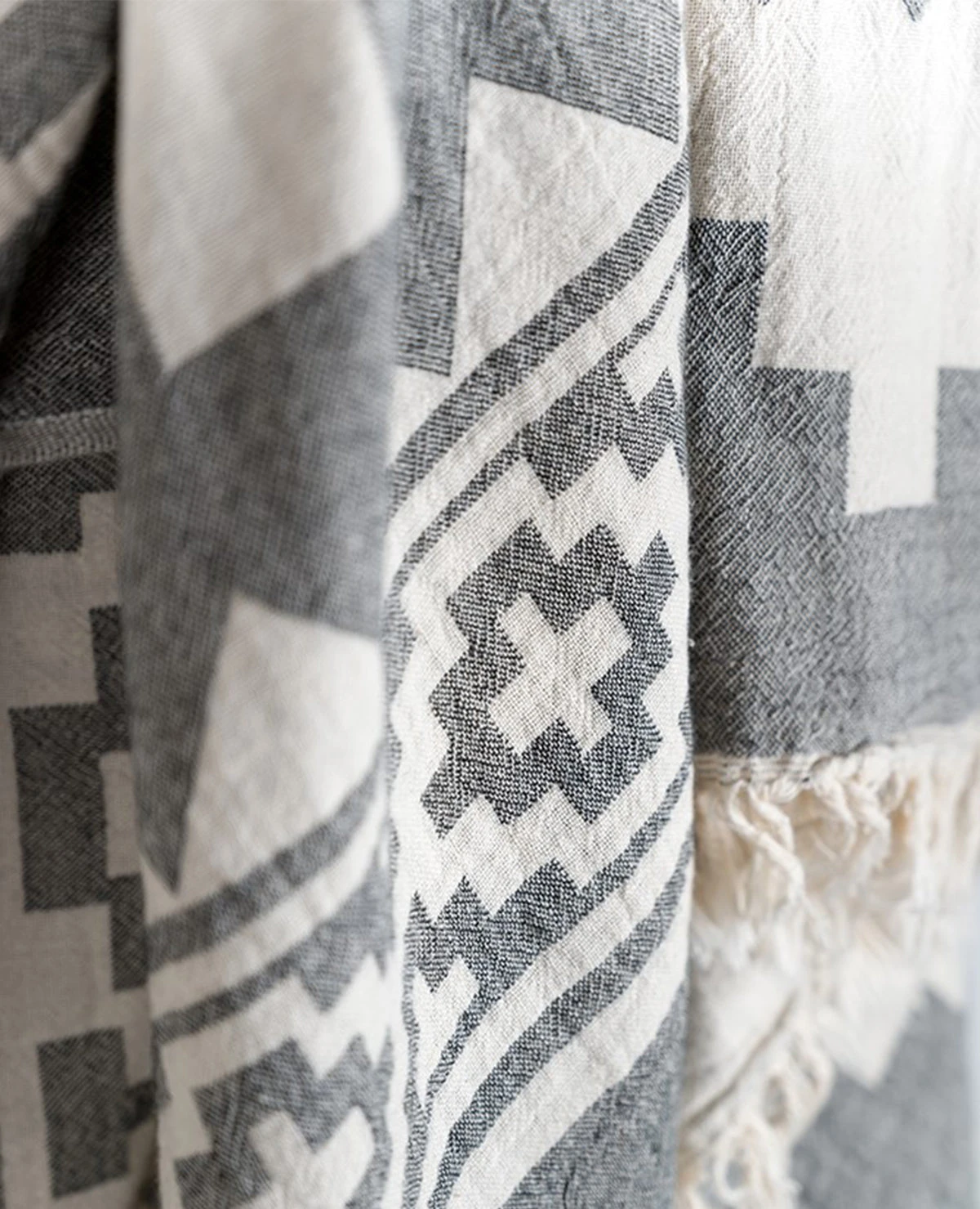 This 100% cotton Turkish fouta is the perfect throw for your bed, but can also be used as a bath towel. It’s lightweight and versatile, and as well-suited for the bathroom, beach and sofa as it is for your bed. It is a reversible, double-layered jacquard, finished with an eyelash fringe. Made of 100% long-staple Turkish cotton, these traditionally woven towels are fairly traded and made by highly-skilled, independent Turkish artisans.