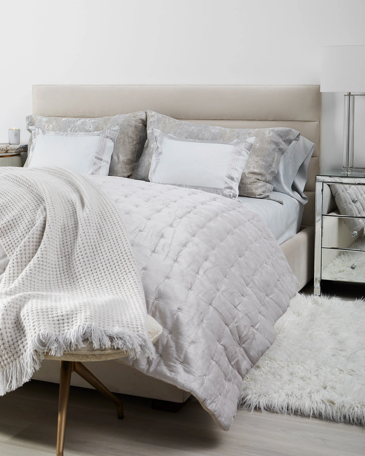 This tufted quilt is made of a soft & luxe slub cotton viscose Velvet, which offers the luxe feel & effect of velvet. Plush and soft, this tuck-embroidered quilt will add a layer of luxury to any bed.