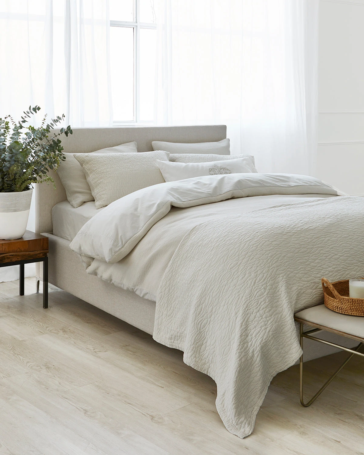 Our Birch collection is a pre-washed 100% long-staple cotton blanket fabric woven in Portugal. Its subtle pattern is both modern and classic, lending itself to just about any style of bedroom.
