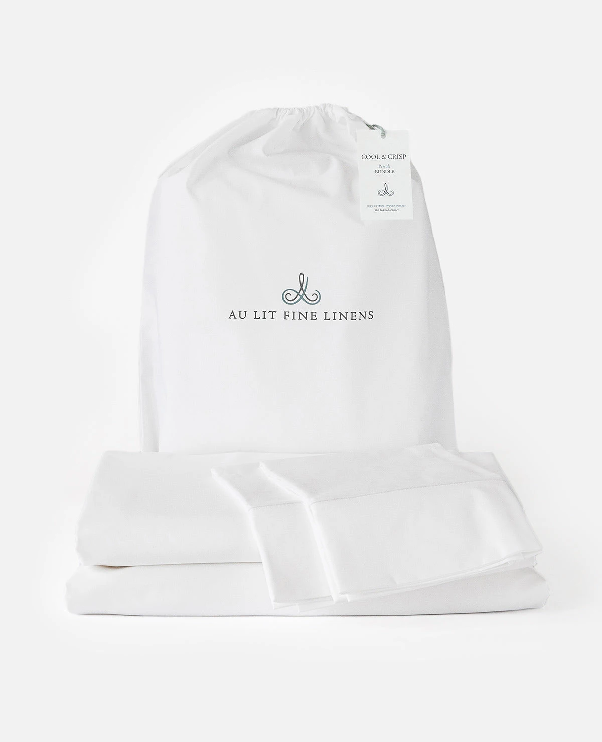 - Twin, Double, and Queen bundles include a fitted sheet, a flat sheet, 1x pair Standard/Queen pillowcases, and an exclusive 100% cotton storage bag
