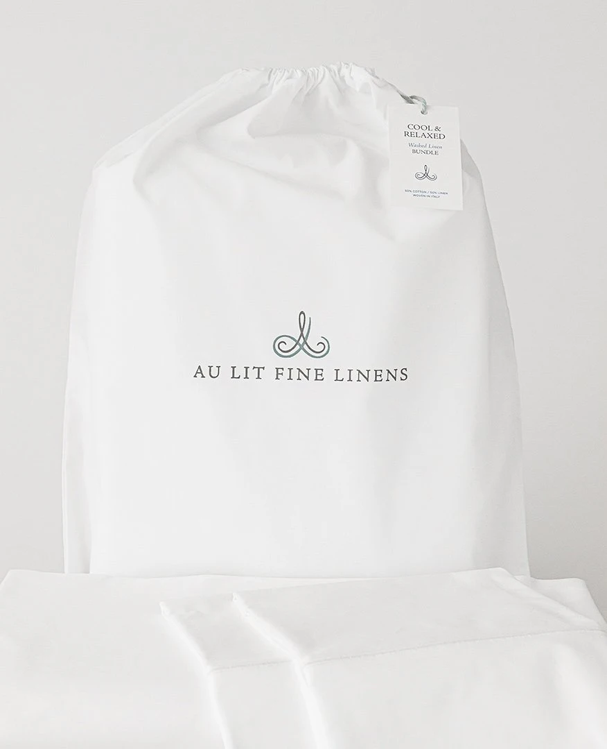 Our best-selling pre-washed Lavato Linen White collection was made for those who love the cool hand and distinct texture of a linen fabric, combined with the added softness of cotton. Now that a flat sheet, fitted sheet, and pair of pillowcases are conveniently bundled in an exclusive 100% cotton storage bag, sinking into your very best sleep is easier than ever.