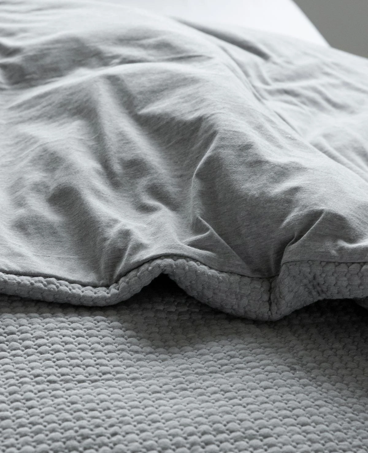 - Duvet covers and shams are quilted cotton jersey with plain jersey on the reverse.