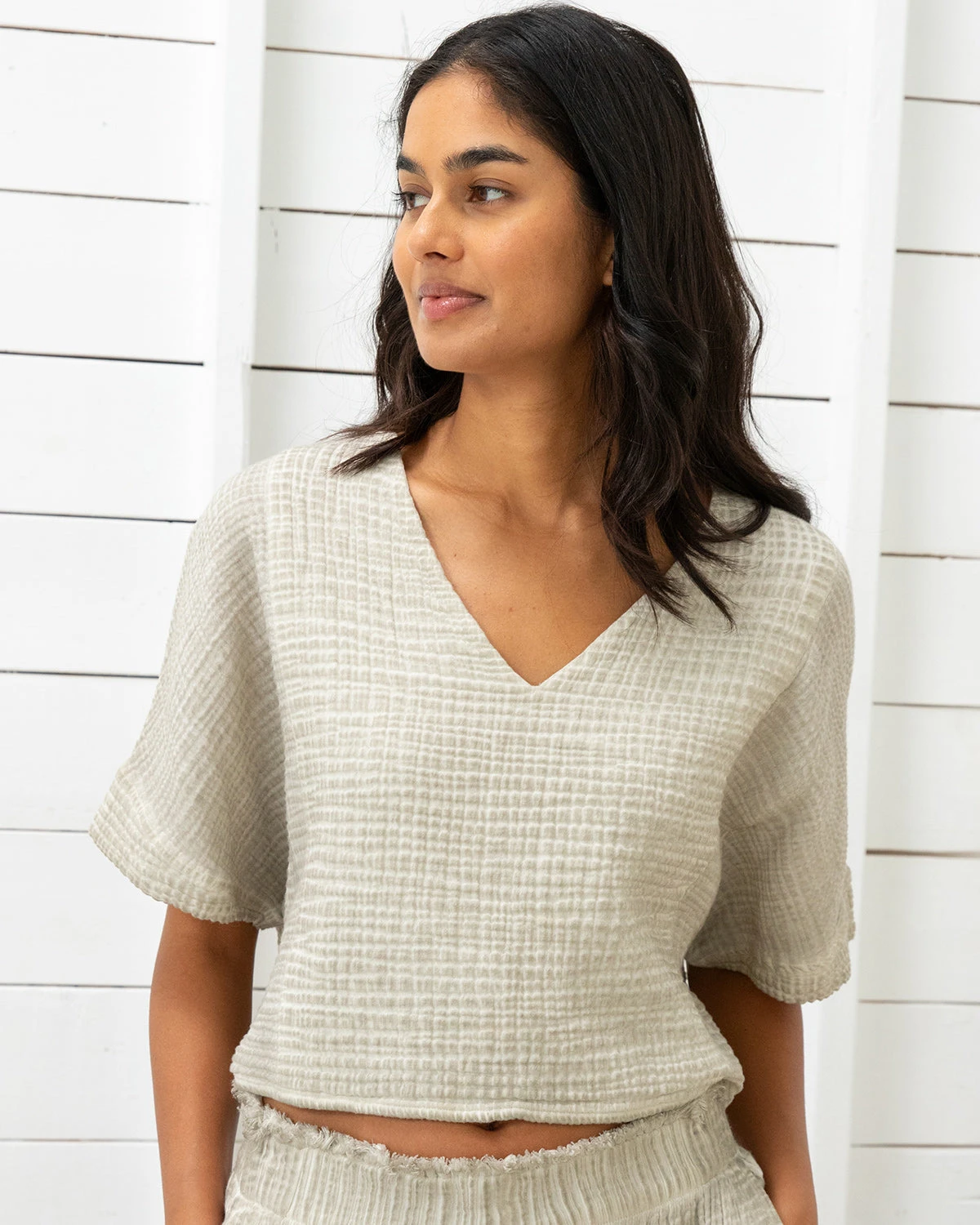 Made with a luxe fabric composed of doubled Turkish muslin cotton. The crinkle muslin texture is incredibly lightweight and soft on the skin. Designed in an oversized style, the Crinkle Shirt Blouse has collar and buttons like a classic PJ top or button-down, and can be worn as a PJ top or shirt. Sustainable and responsibly made in Turkey exclusively for Pokoloko.