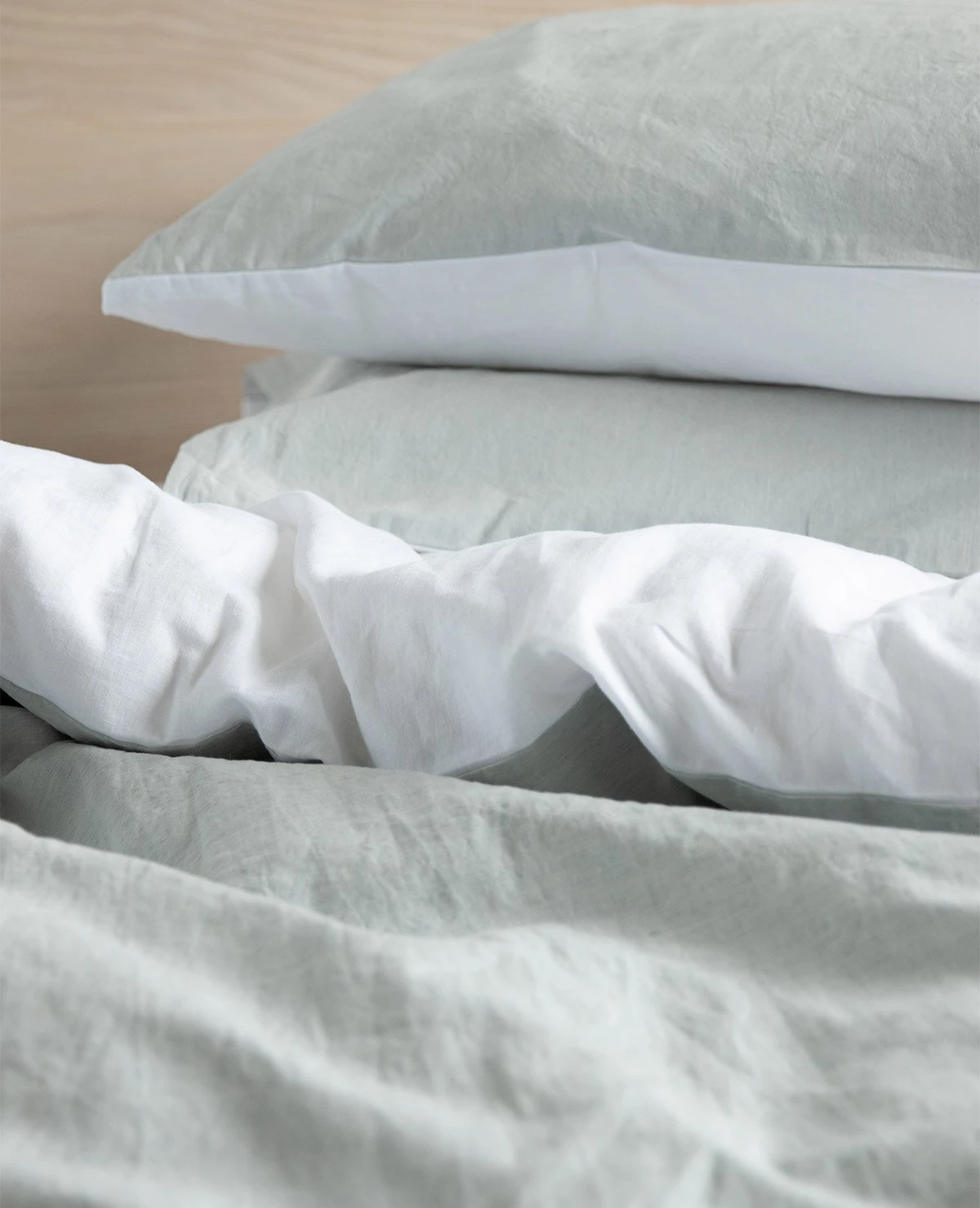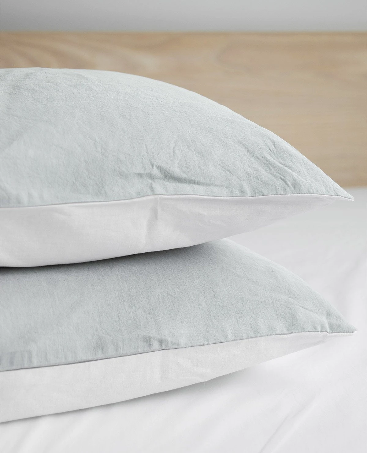 The Duet Linen collection is made of a 50/50 blend of long-staple cotton and Italian linen, giving the fabric the wonderful look and texture of linen, with the soft hand of cotton. Duet duvet covers reverse Skylight to White. Pillow cases are reversible White/Skylight.
