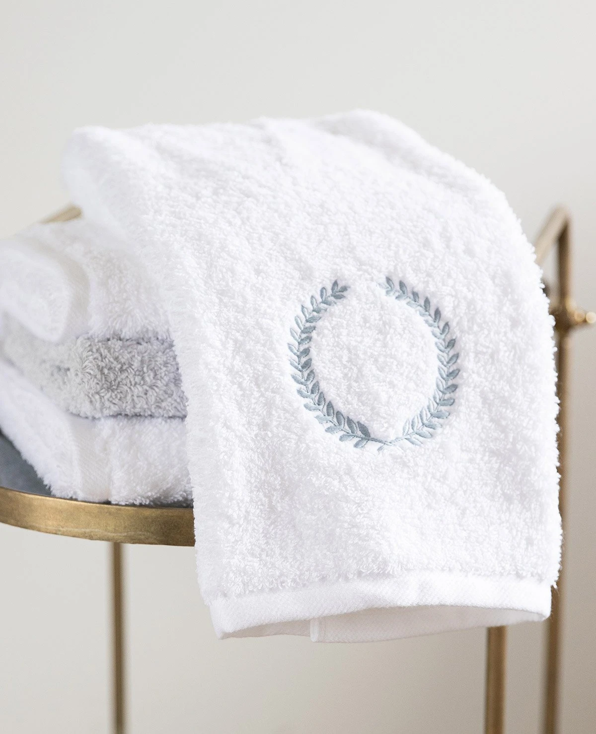 Our luxurious Au Lit Luxe Towels are now available with a classic wreath or Laurel embroidery. Personalize the embroidery with a colour of your choice. This collection is made-to-order and sold in sets of 2 per size.