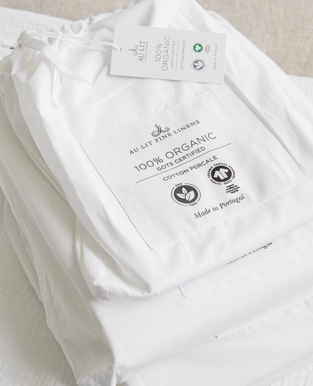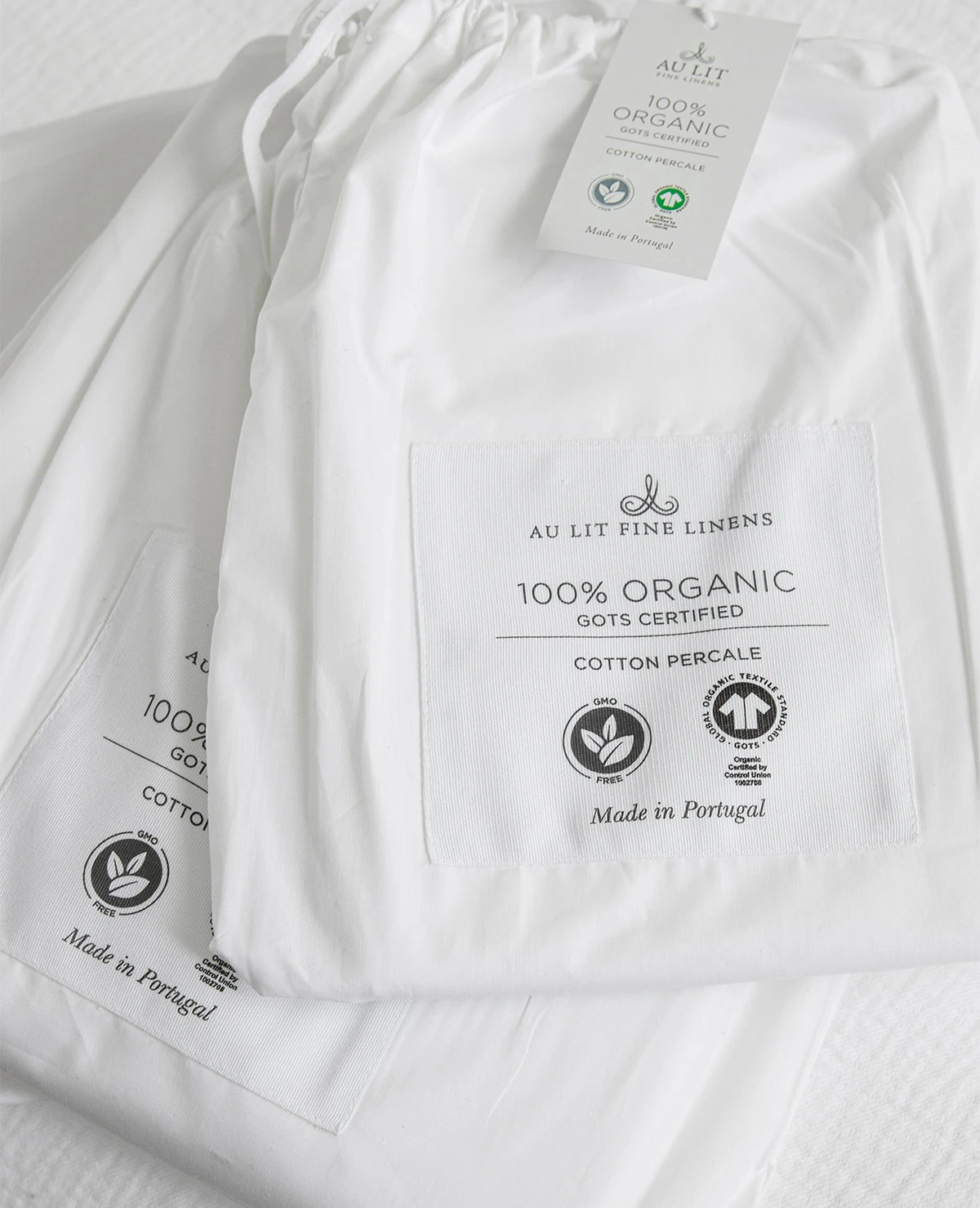 Our Organic 200 Thread Count long-staple cotton percale is expertly woven in Portugal and crafted in Canada & Portugal. The Zen collection is perfect for anyone who loves slipping into cool & crisp sheets (think of your favourite well-worn cotton button down). This collection is made of 100% organic cotton and certified GOTS (Global Organic Textile Standard).