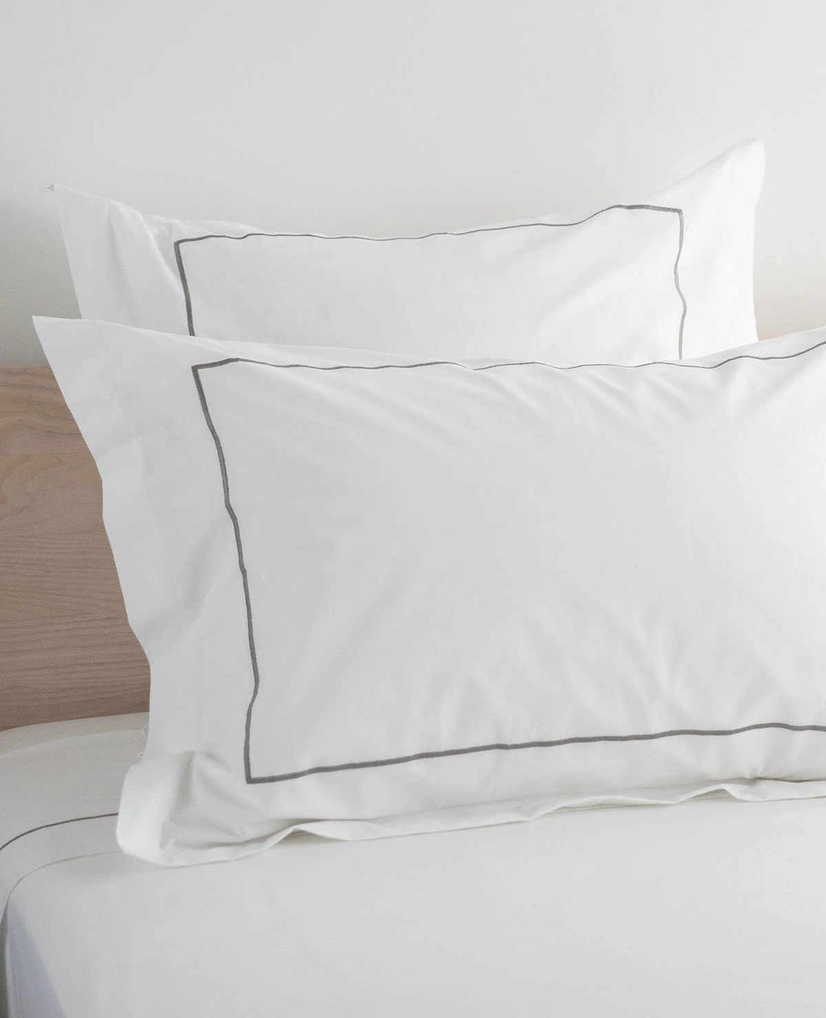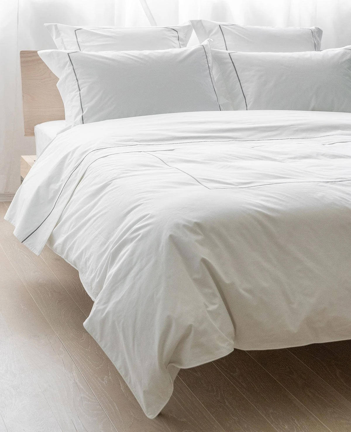 Our custom embroidered collections are proudly made-to-order at our Montreal workroom in the fabric and stitch colour of your choosing. Our classic Hotel 1-Line embroidery is now available for order on our bestselling crisp & buttery soft 410 Thread Count Percale. Choose from over 20 distinct embroidery colours to personalize this classic style for your own bedroom. The single line of embroidery adds just the right amount of personality while maintaining a clean & classic aesthetic. Our 410 Thread Count 100% long-staple cotton percale is at once crisp & buttery soft – our top seller for a reason.