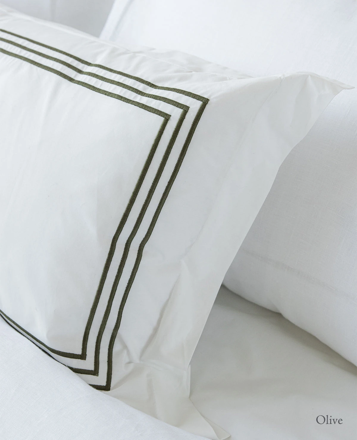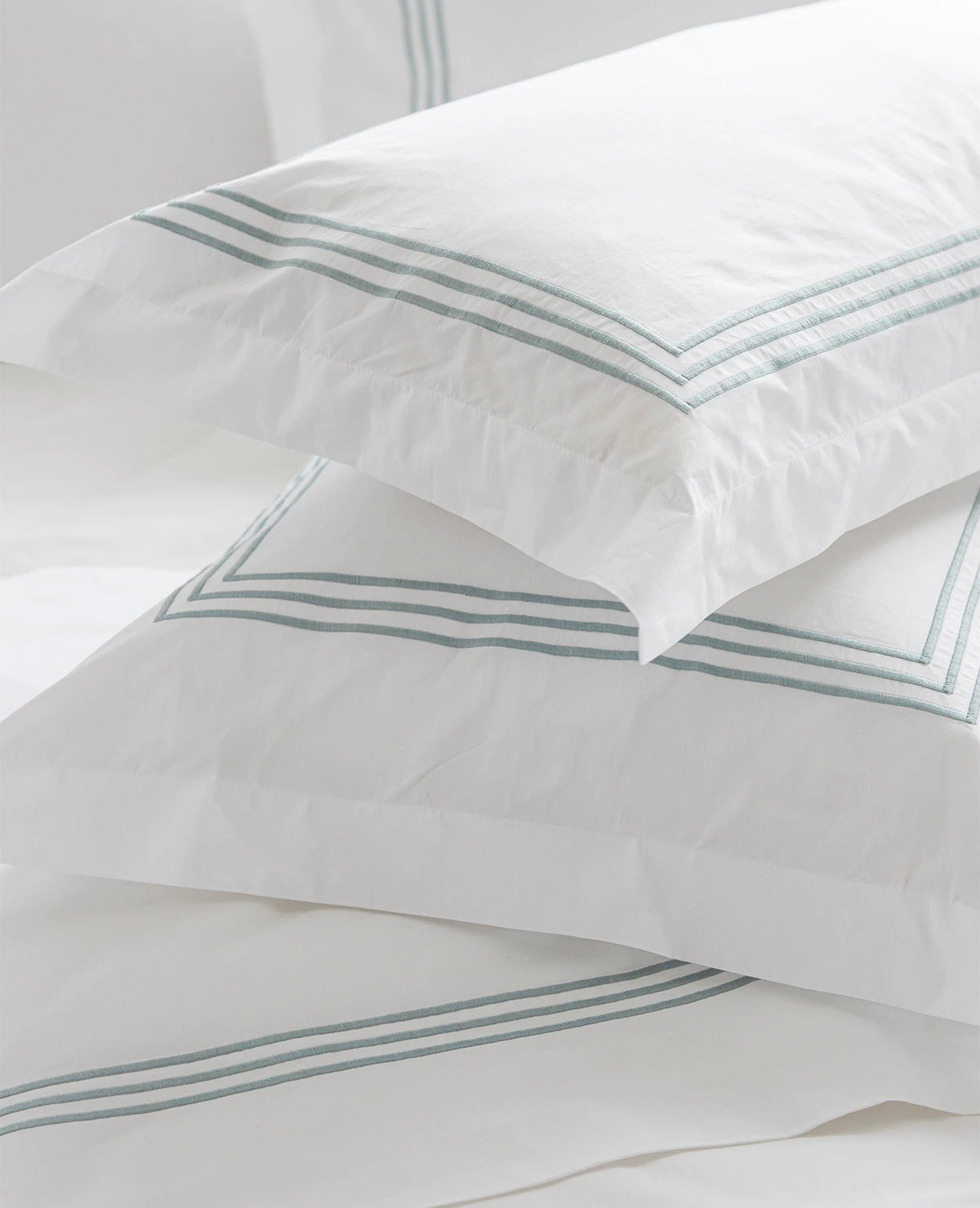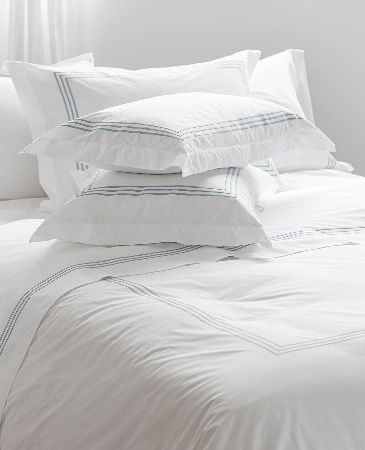 Our custom embroidered collections are proudly made-to-order at our Montreal workroom in the fabric and stitch colour of your choosing. Our 3-line embroidery stitch is reminiscent of the traditional Italian design that originated in the 1920’s and launched the new standard for casual luxury. This collection is now available for order on our bestselling 410 Thread Count Percale, at once crisp & buttery soft in feel. Choose from over 20 distinct thread colours to personalize your look! Your bedding will be proudly made-to-order at our dedicated workroom right here in Canada.