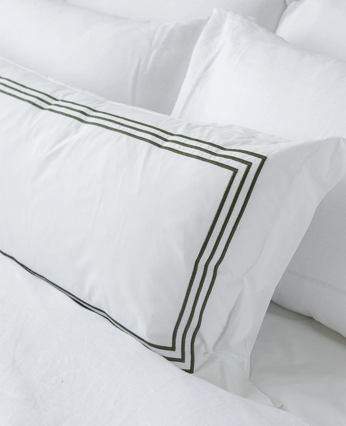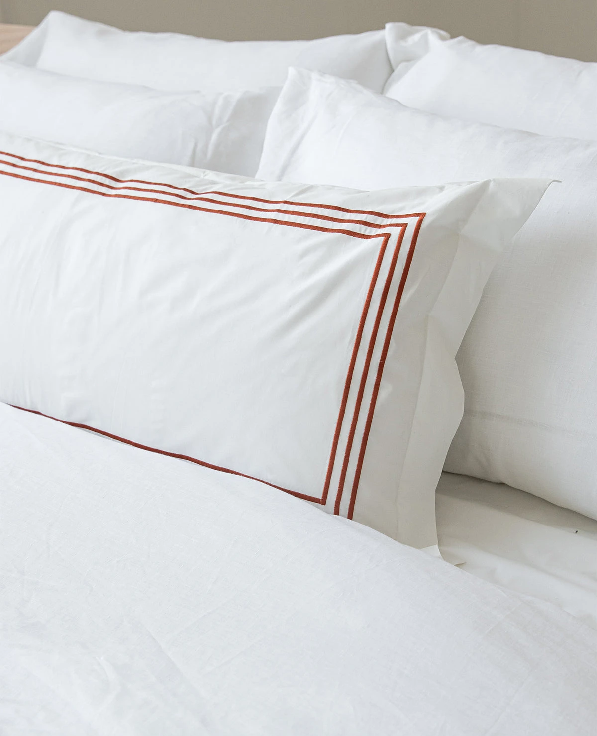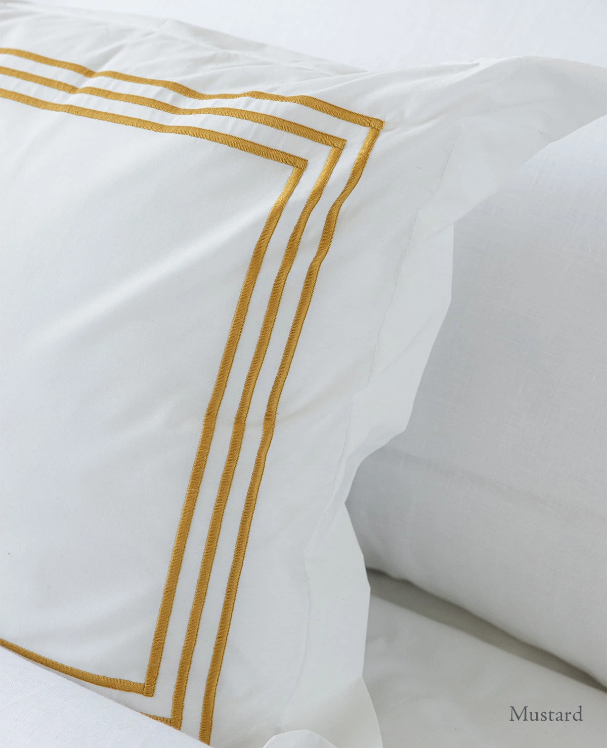 Our custom embroidered collections are proudly made-to-order at our Montreal workroom in the fabric and stitch colour of your choosing. Our 3-line embroidery stitch is reminiscent of the traditional Italian design that originated in the 1920’s and launched the new standard for casual luxury. This collection is now available for order on our bestselling 410 Thread Count Percale, at once crisp & buttery soft in feel. Choose from over 20 distinct thread colours to personalize your look! Your bedding will be proudly made-to-order at our dedicated workroom right here in Canada.