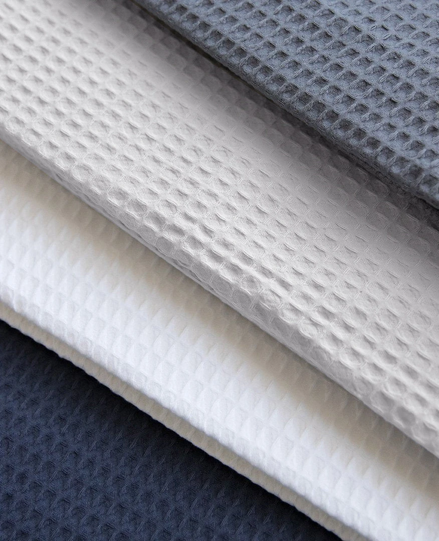 Large Waffle is a soft, lightweight textured fabric woven in Portugal from long-staple US cotton. Perfect as a light cotton blanket or duvet cover.100% long-staple cotton