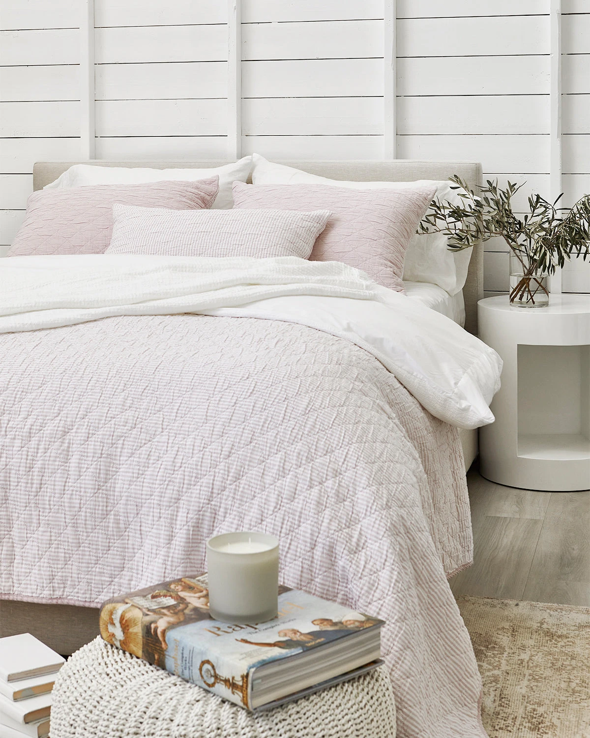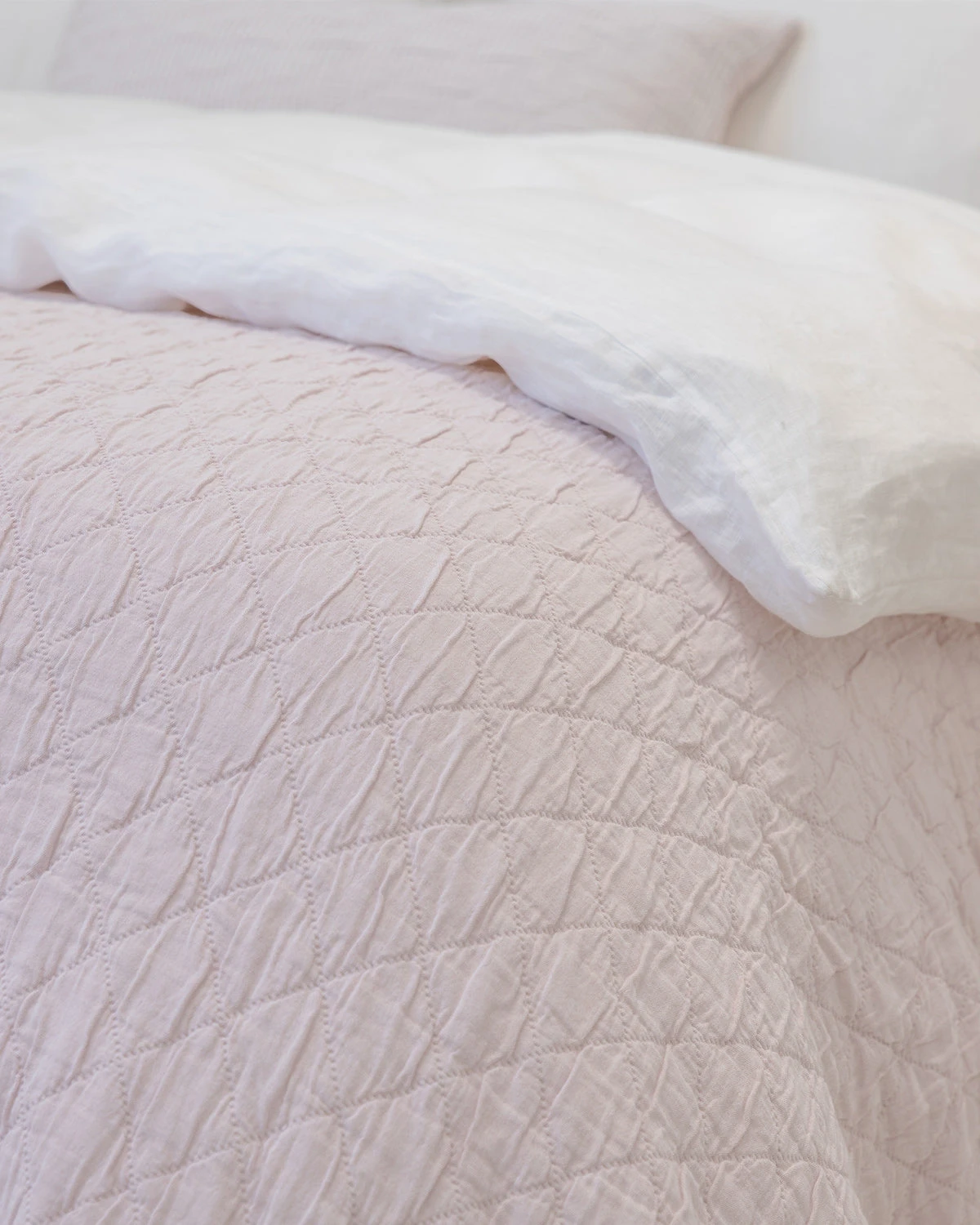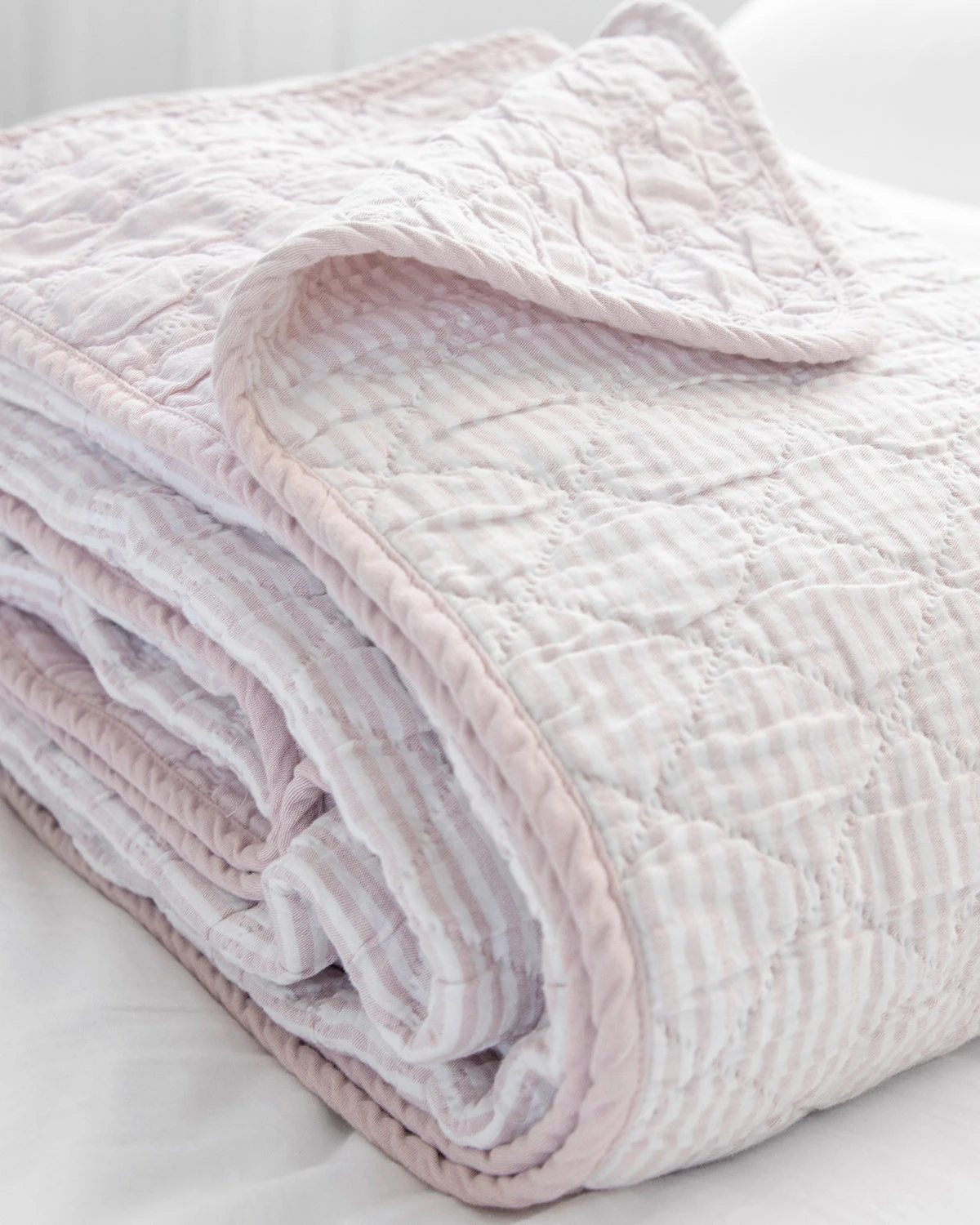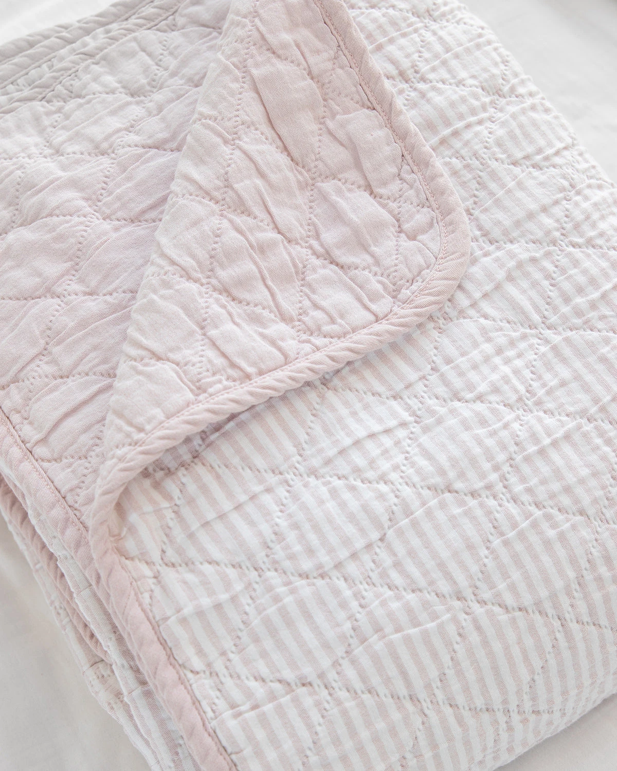 This classic preppie quilt has a clean, simple quilted pattern of small diamonds made of 100% cotton yarn dye fabric, with one side solid Chambray pink reversing to a classic Oxford stripe pink. Perfect for the cottage, the kids and the master bedroom year-round.