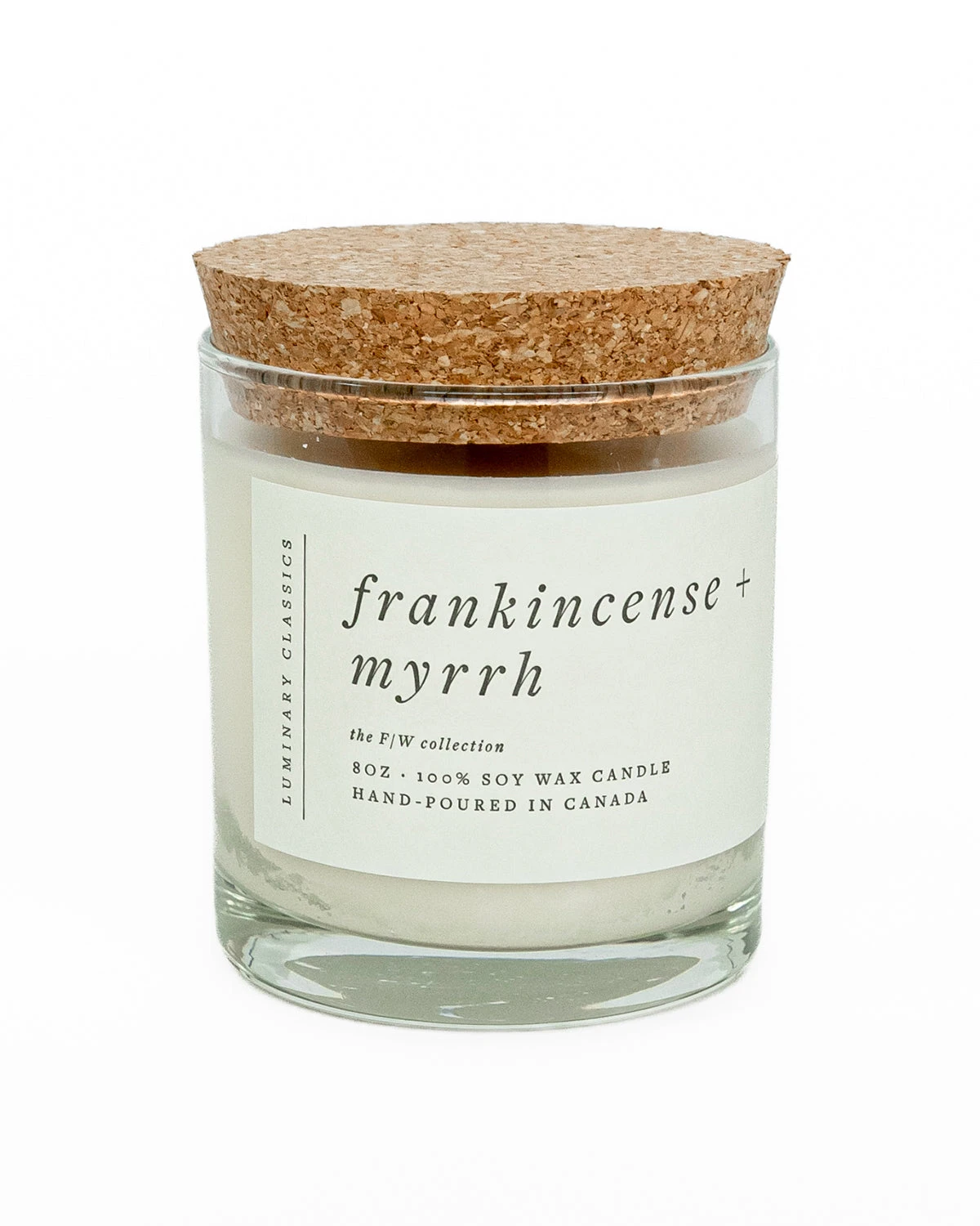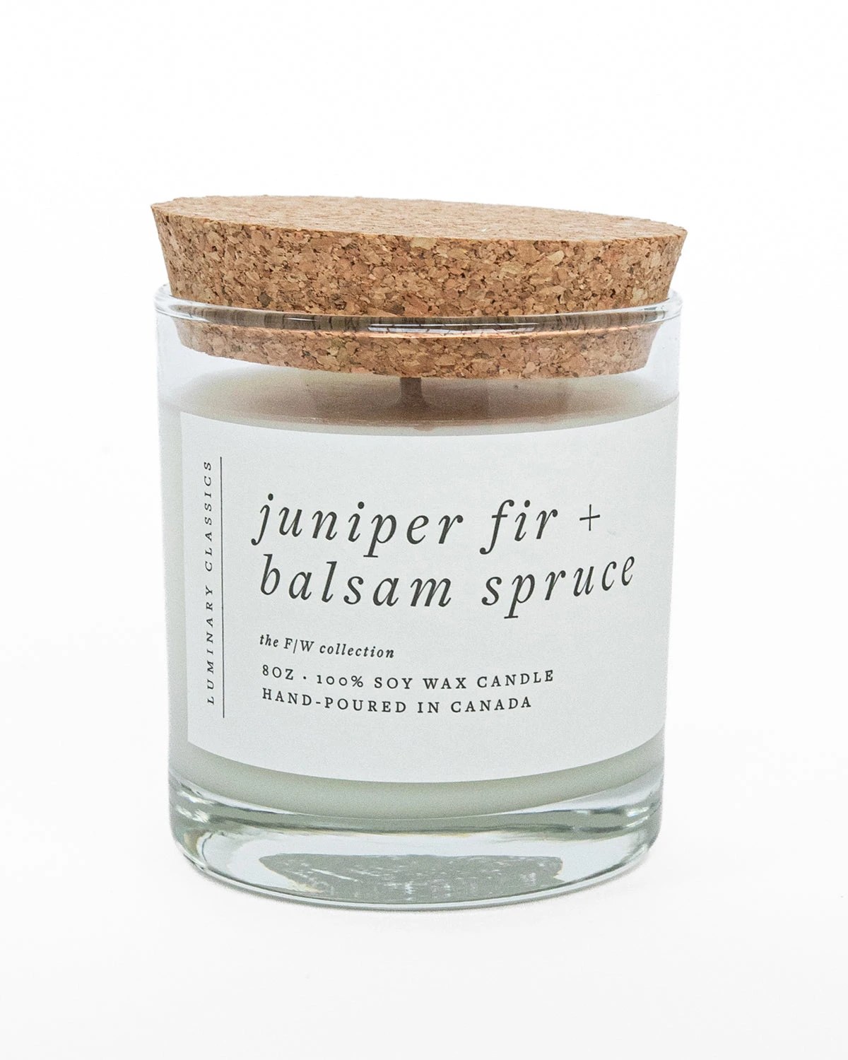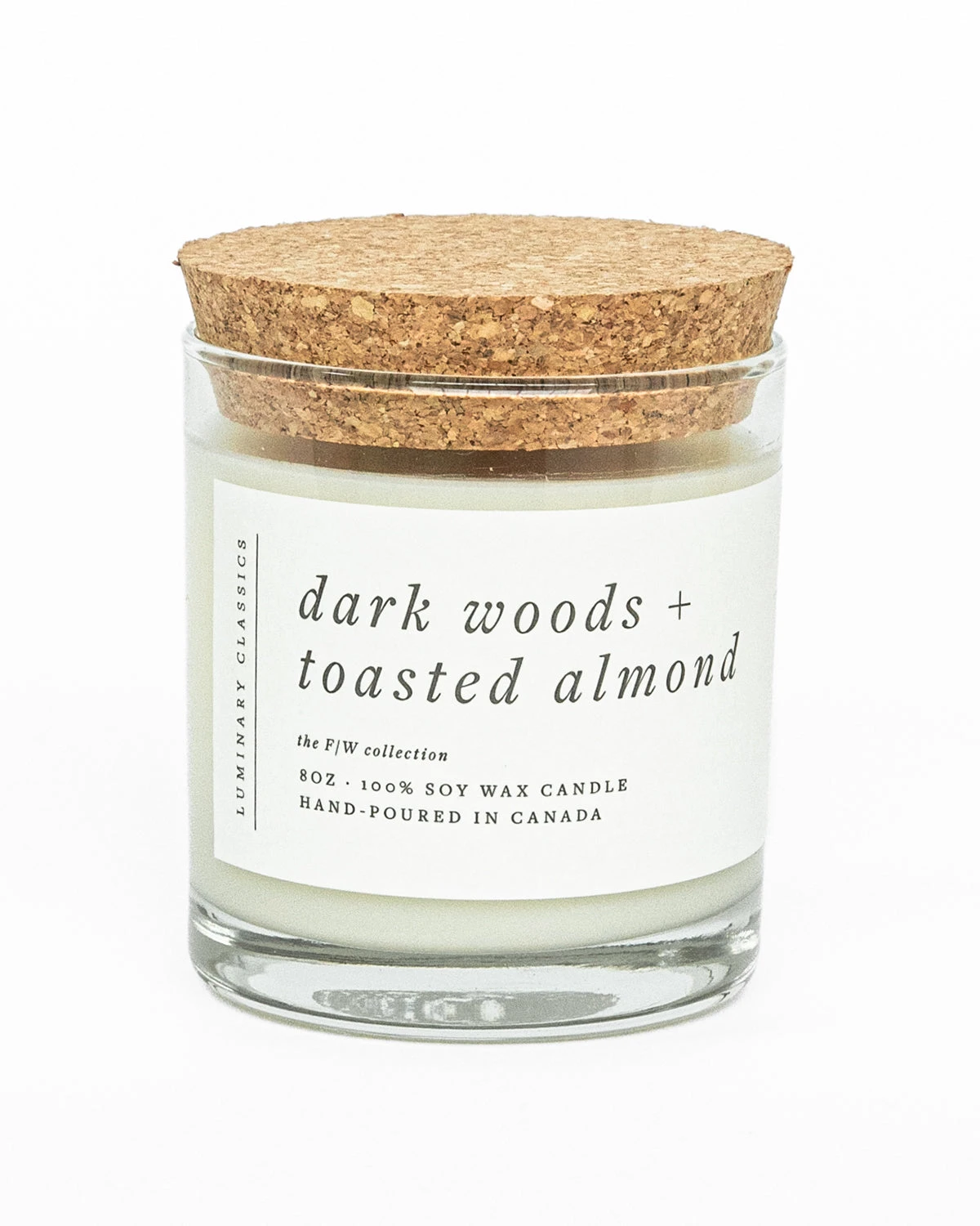 A creamy, 100% soy wax candle in a luxurious heavy-bottomed reusable whiskey tumbler, with a cork lid. Beautifully designed labels are elegant and minimalist with hand-crafted letterpress embossing (8oz jar).
