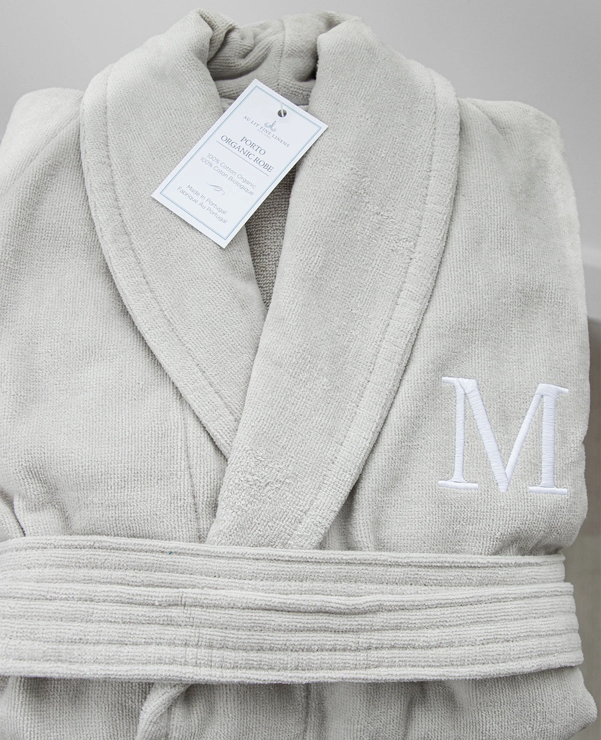 Our plush organic cotton robe can be personalized with a unique monogram. Choose your font, stitch colour, and a single initial to create a distinctive personalized gift.