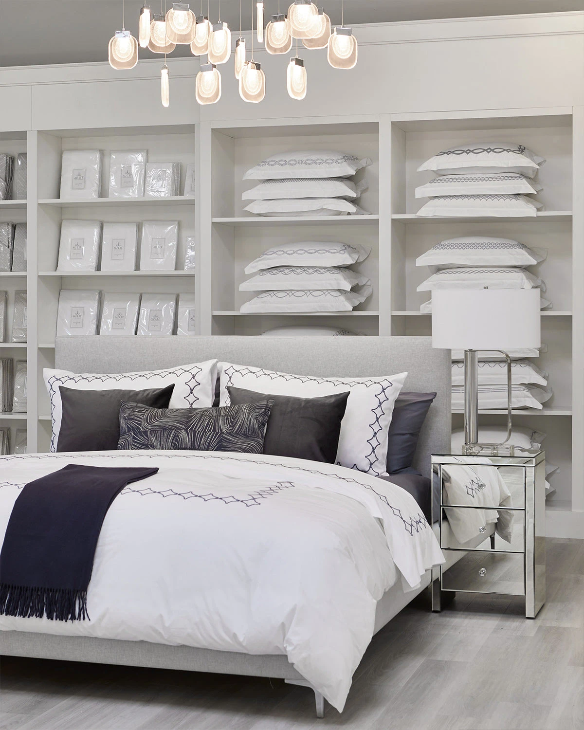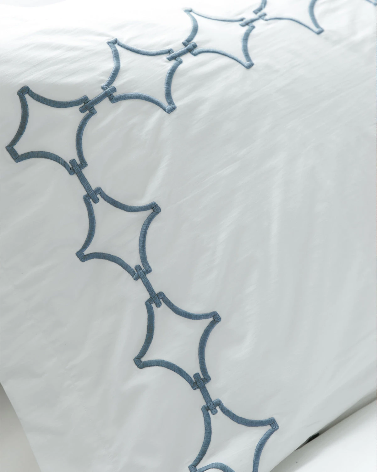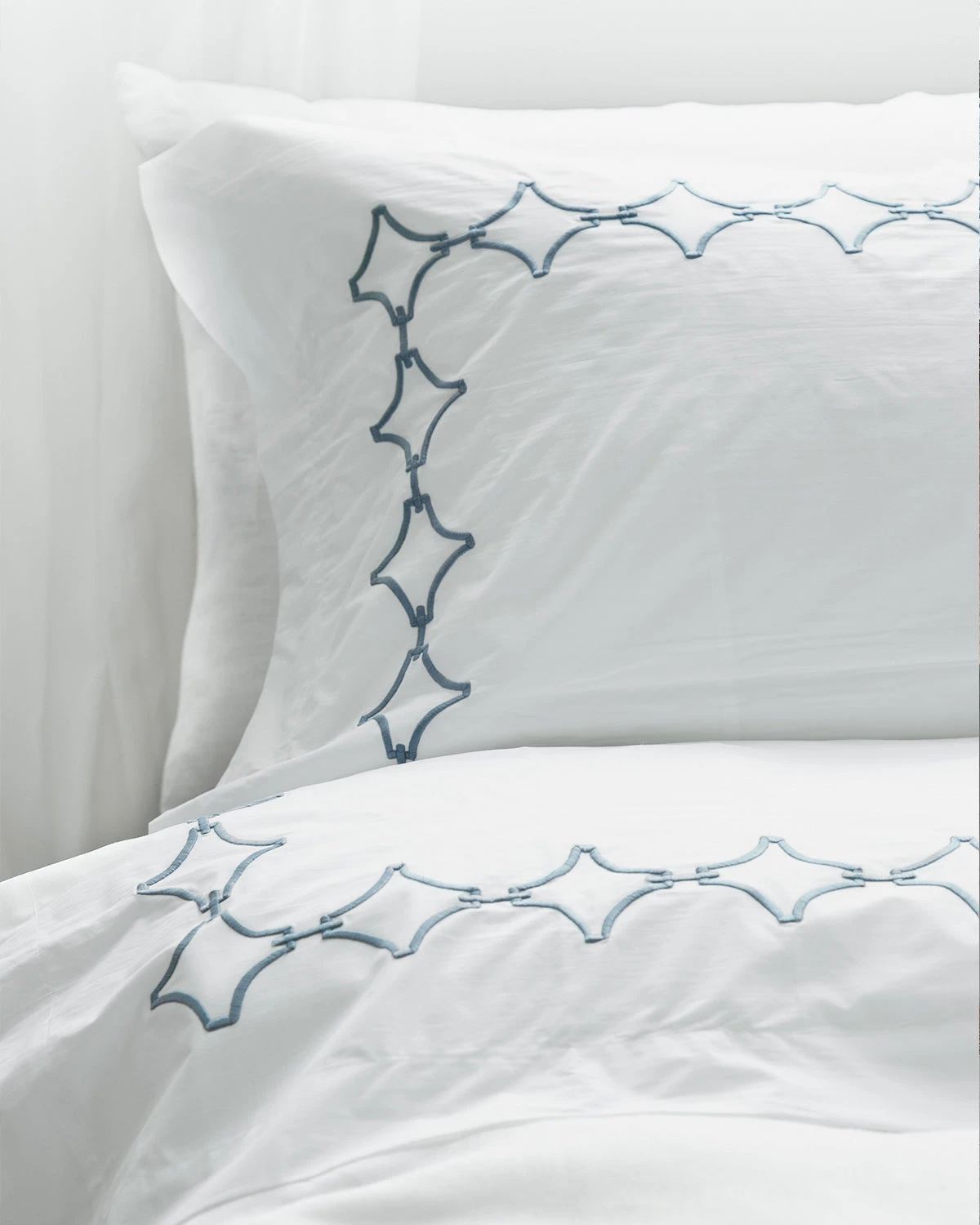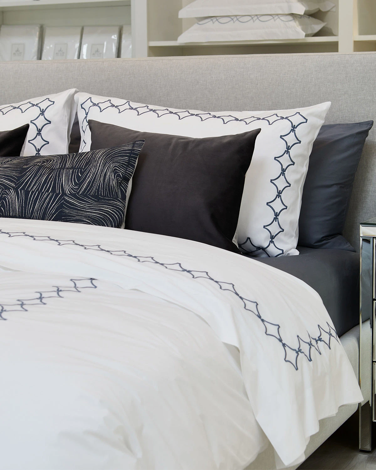 Our Nuovo embroidery collection is a timeless Italian classic, embroidered in Italy on 220 thread count Egyptian cotton percale. The Nuovo collection is custom-made in Italy for you, so please allow 8-10 weeks for delivery.