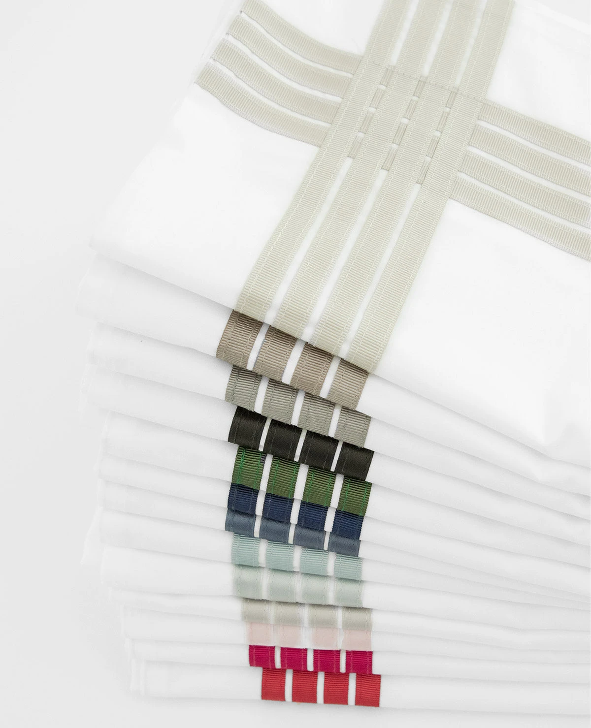 - Available in White or Milk Percale in the following ribbon colours: Navy, Midnight, Mineral Blue, Pearl Grey, Stone Grey, Taupe, Flax, Cream, Raspberry, Blush, Dusty Violet, Hunter green, Red, Black.