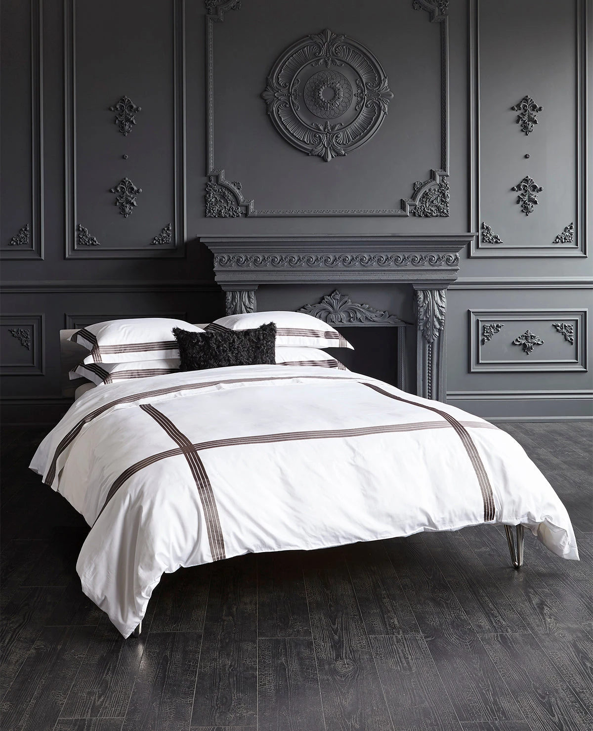 This show-stopping collection is made in Belgium of 100% Egyptian Cotton Percale in a 220 thread count, woven in Italy. Featuring delicate gross-grain or satin ribbon detailing in 14 stunning colours, on White or Milk 220 thread count Percale, the Quartette design echoes a classic hotel embroidery with an elegant twist. Bold and versatile, this clean, modern bedding will elevate the styling of any bed. *Please note this collection is made-to-order at our partner’s workroom in Belgium and will be Final Sale. Allow 4-6 weeks for delivery.