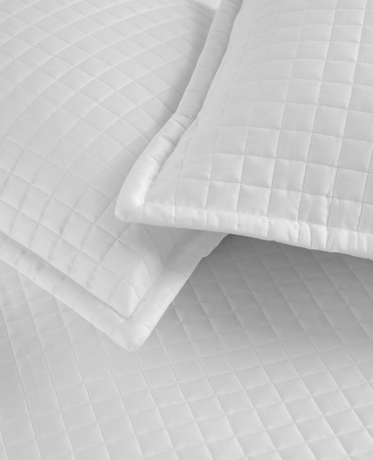 Au Lit’s Savoy collection is a quilted cotton sateen made in Canada from 100% long-staple cotton. Available in classic white, the geometric quilting and slight sheen will never go out of style.