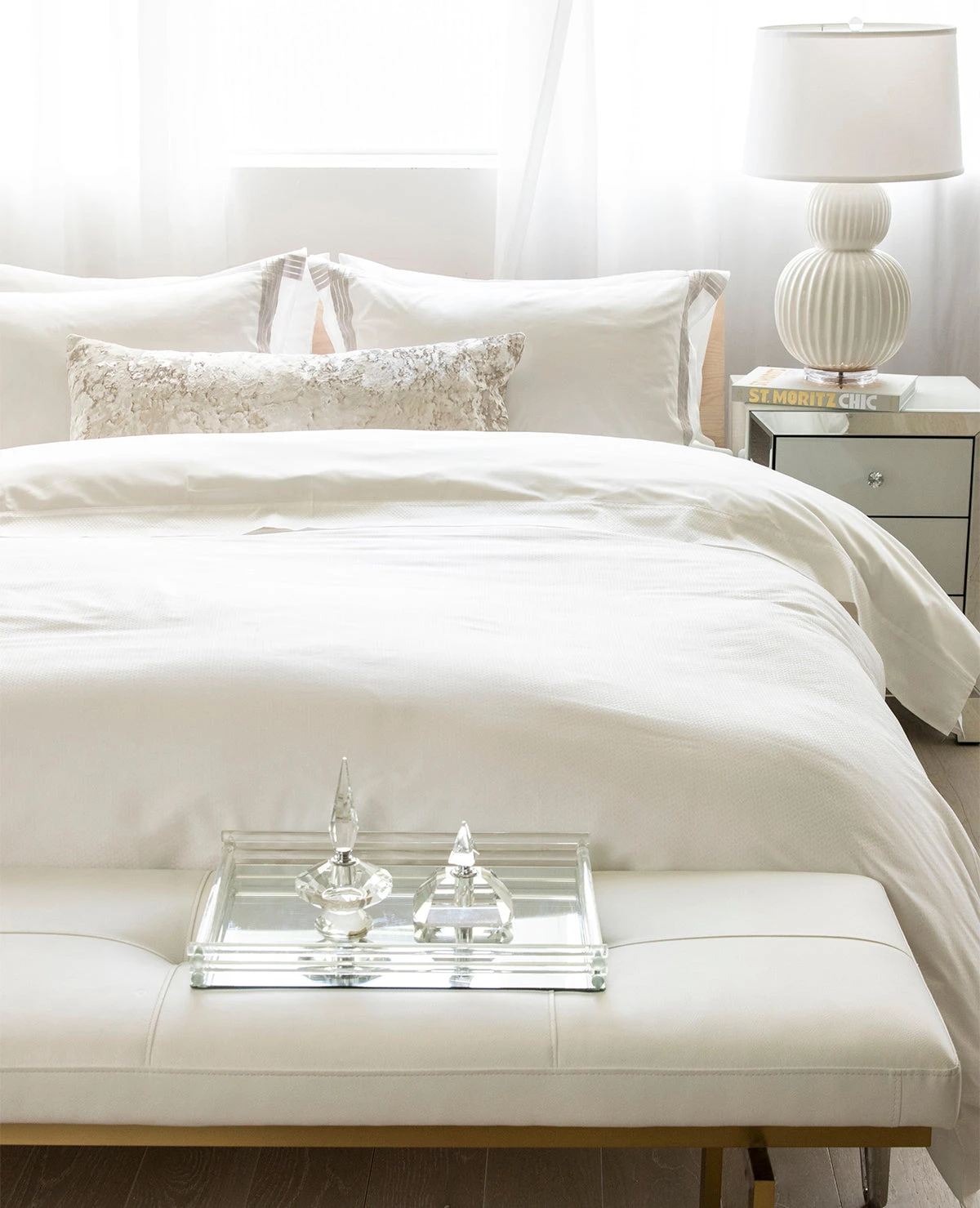 Our Simone jacquard has a simple, modern pattern woven in Italy from the finest quality 600-thread count, 100% Egyptian cotton. This stunning contemporary design is available in White, Milk and Eggshell (cream), and is marvellously versatile.