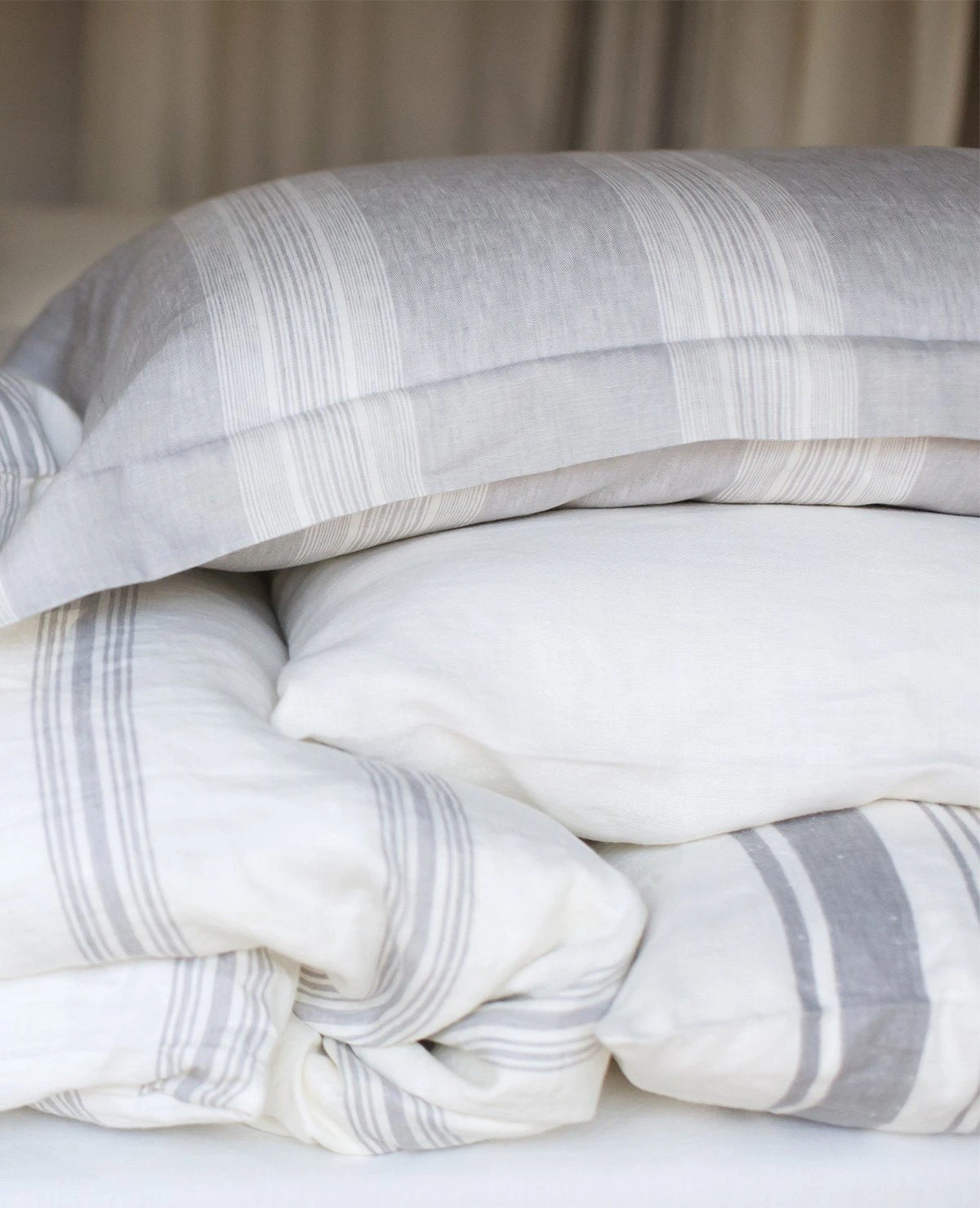 Libeco’s Sisco Linen collection features a subtle stripe in soft grey & off-white. Relaxed and casual, this washed linen collection embodies laid-back elegance. Libeco is the world’s foremost producer of Belgian linen bedding.