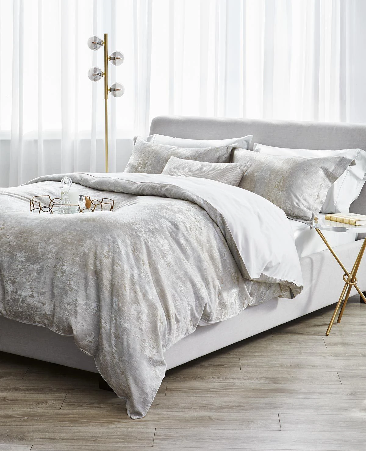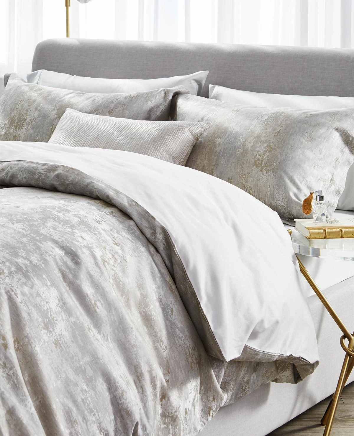 - Available in Silver-Sand Pattern duvet cover reversing to Solid Luna Grey Sateen