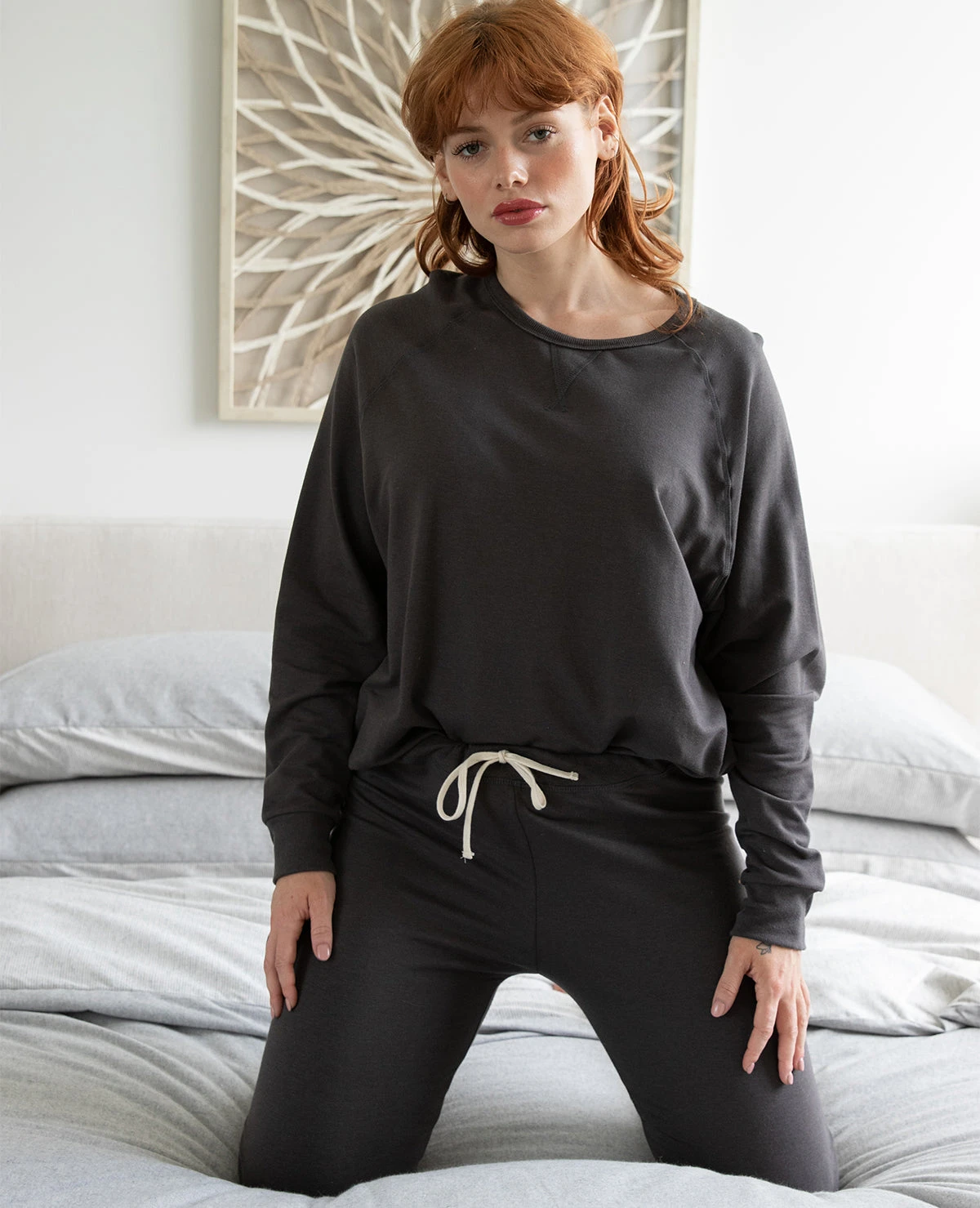 Made in Canada exclusively for Au Lit, these lightweight, super-soft bamboo/cotton French terry joggers are an absolute dream. With a comfy, relaxed fit, ribbed elastic ankle cuff and an updated wide-ribbed flat-front elastic waistband, this is sure to become a staple in your loungewear rotation.