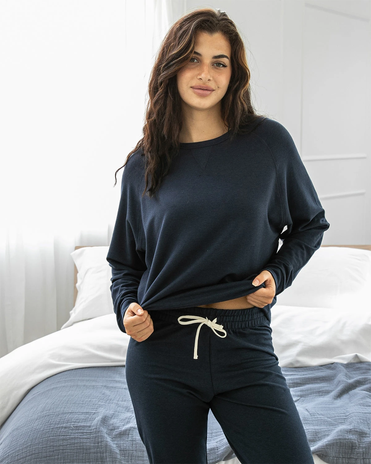 Made in Canada exclusively for Au Lit, these lightweight, super-soft bamboo/cotton French terry joggers are an absolute dream. With a comfy, relaxed fit, ribbed elastic ankle cuff and an updated wide-ribbed flat-front elastic waistband, this is sure to become a staple in your loungewear rotation.