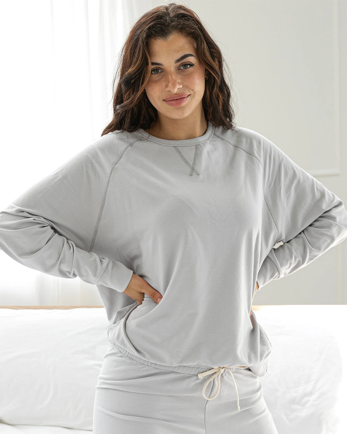 Made in Canada exclusively for Au Lit, these lightweight, super-soft bamboo/cotton French terry joggers are an absolute dream. With a comfy, relaxed fit, ribbed elastic ankle cuff and an updated wide ribbed flat-front elastic waistband, this is sure to become a staple in your loungewear rotation.