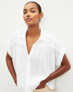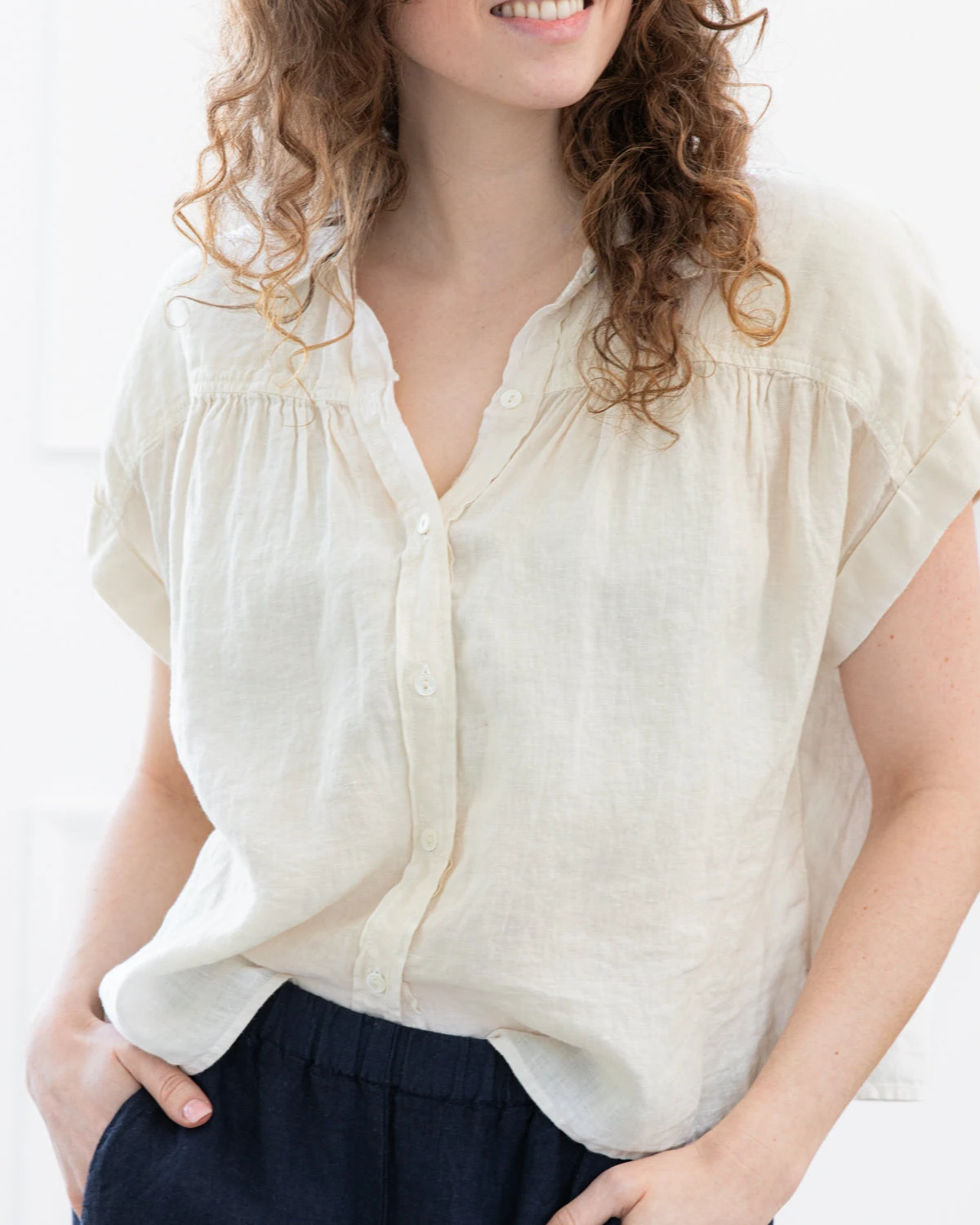 Linen is our favourite summer fabric, offering a relaxed vibe and naturally cooling properties. This short sleeve button-up features a traditional collar and scooped hemline; an effortless essential.