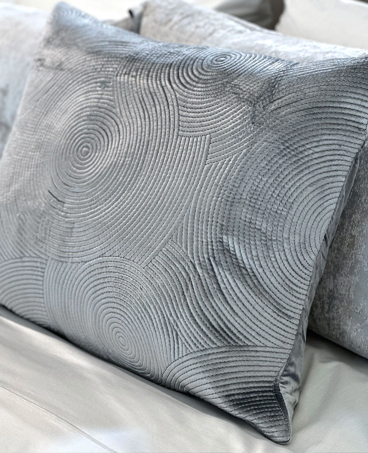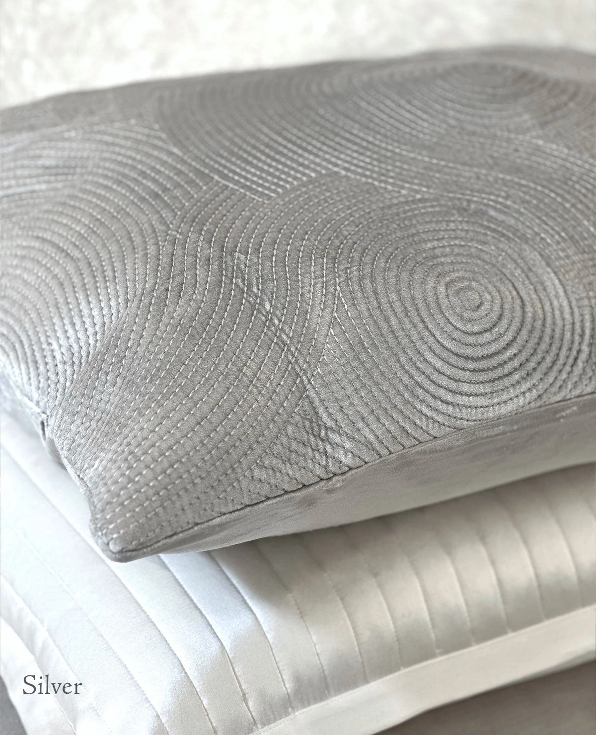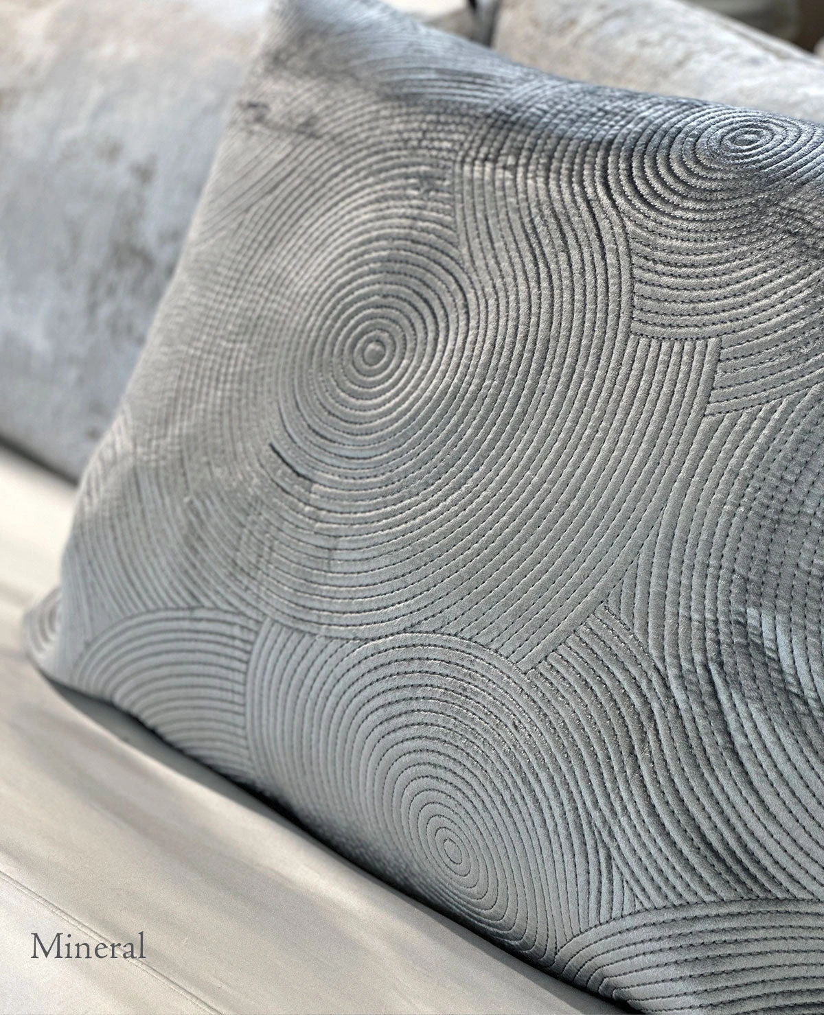 - 100% Cotton Velvet Exterior in Milk, Mineral Blue, Silver & Aqua