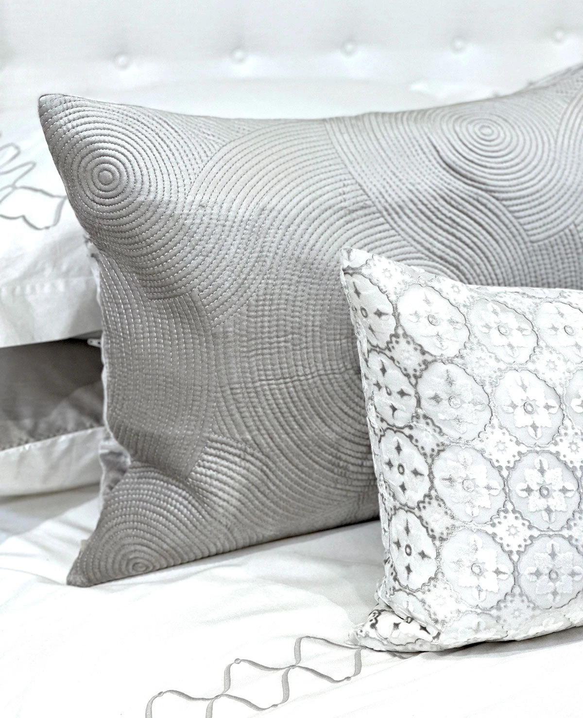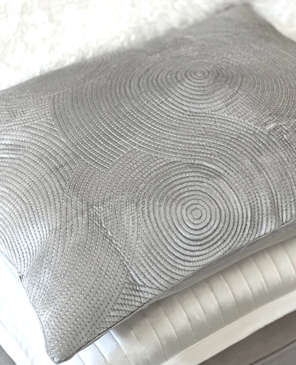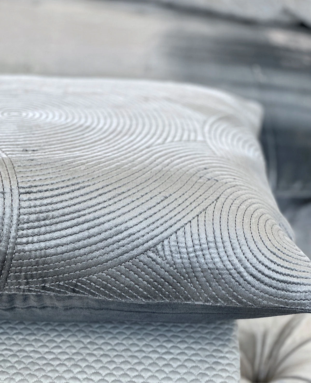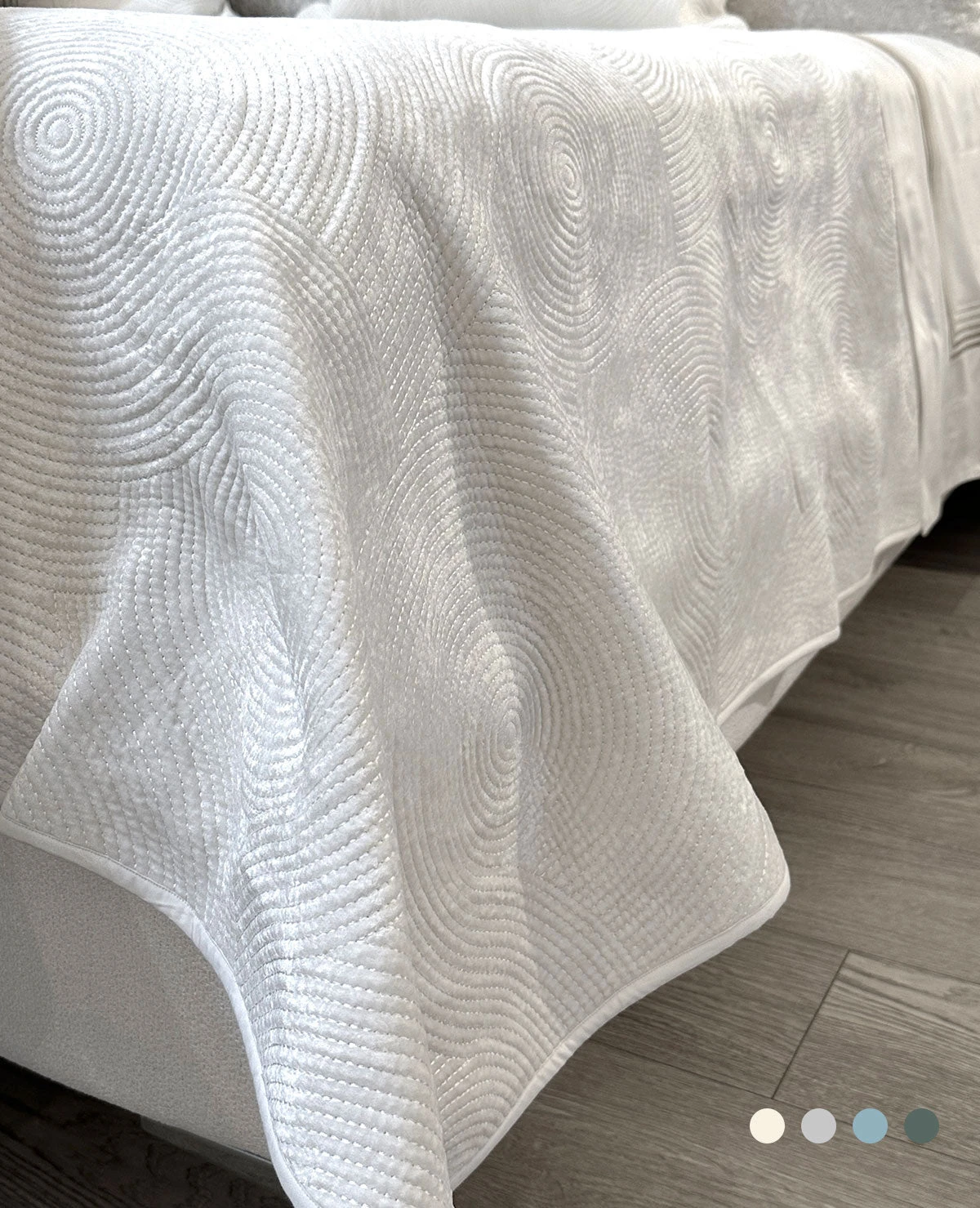- 100% Cotton Velvet Exterior in Milk, Mineral Blue, Silver & Aqua