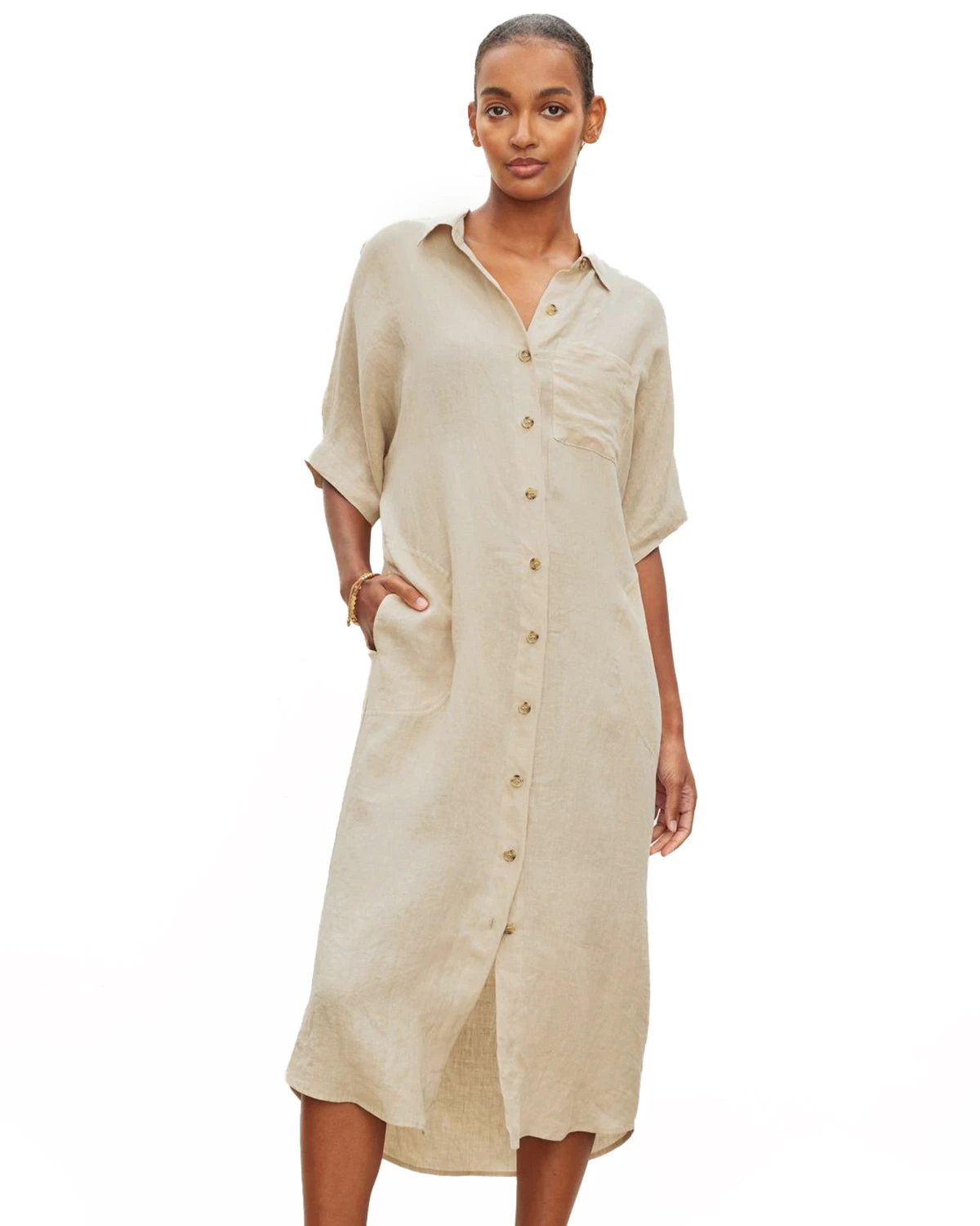 Linen is our favourite summer fabric, offering a relaxed vibe and naturally cooling properties. This gorgeous, light & flowy dress is easily dressed up or down, as perfect for a day of lounging by the pool as a romantic dinner by the beach. The Sandra dress features a relaxed fit, midi-length, and removable fabric belt.