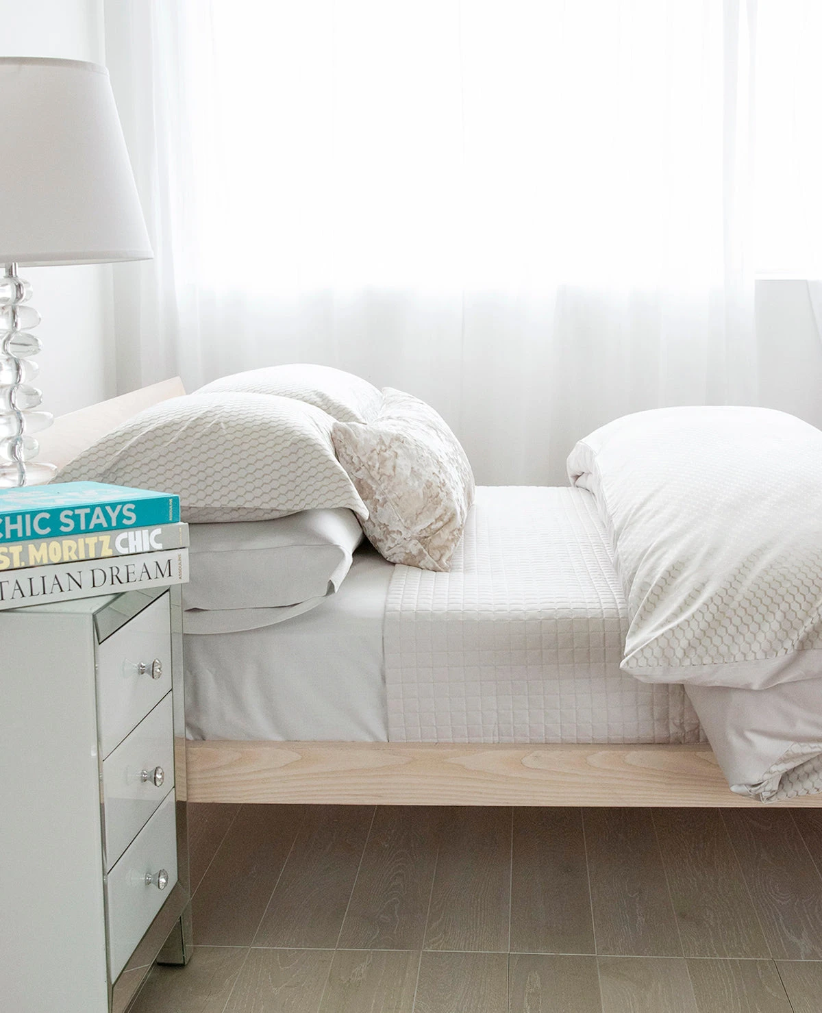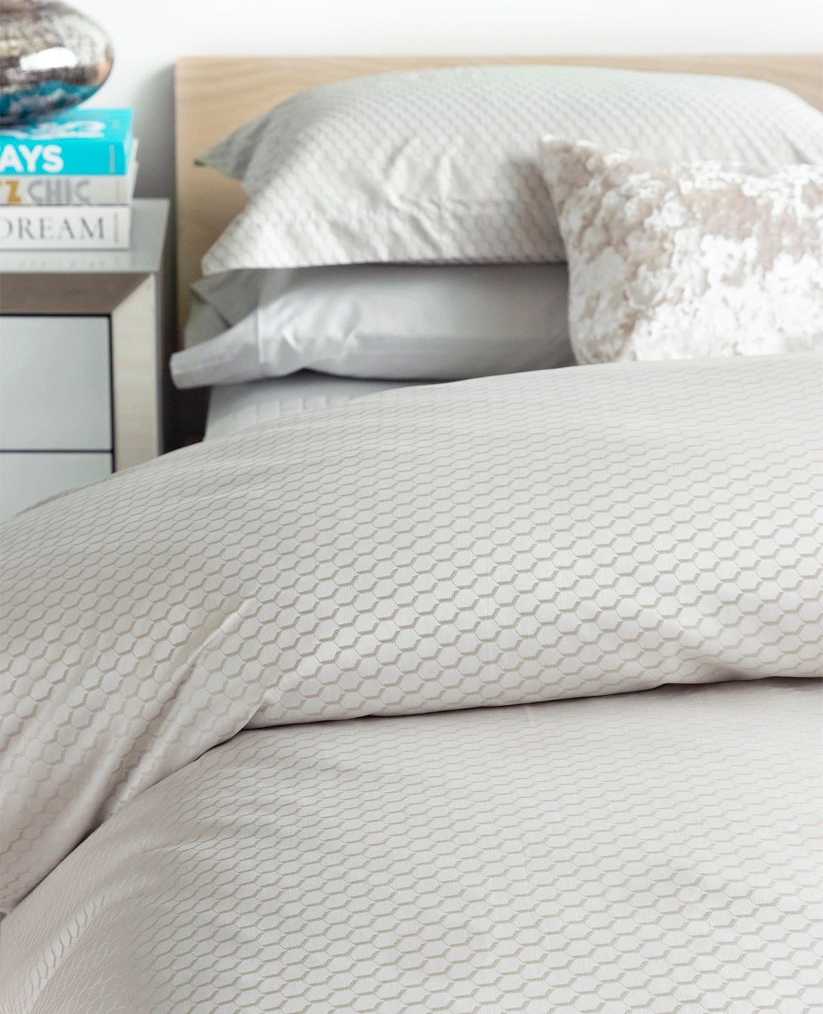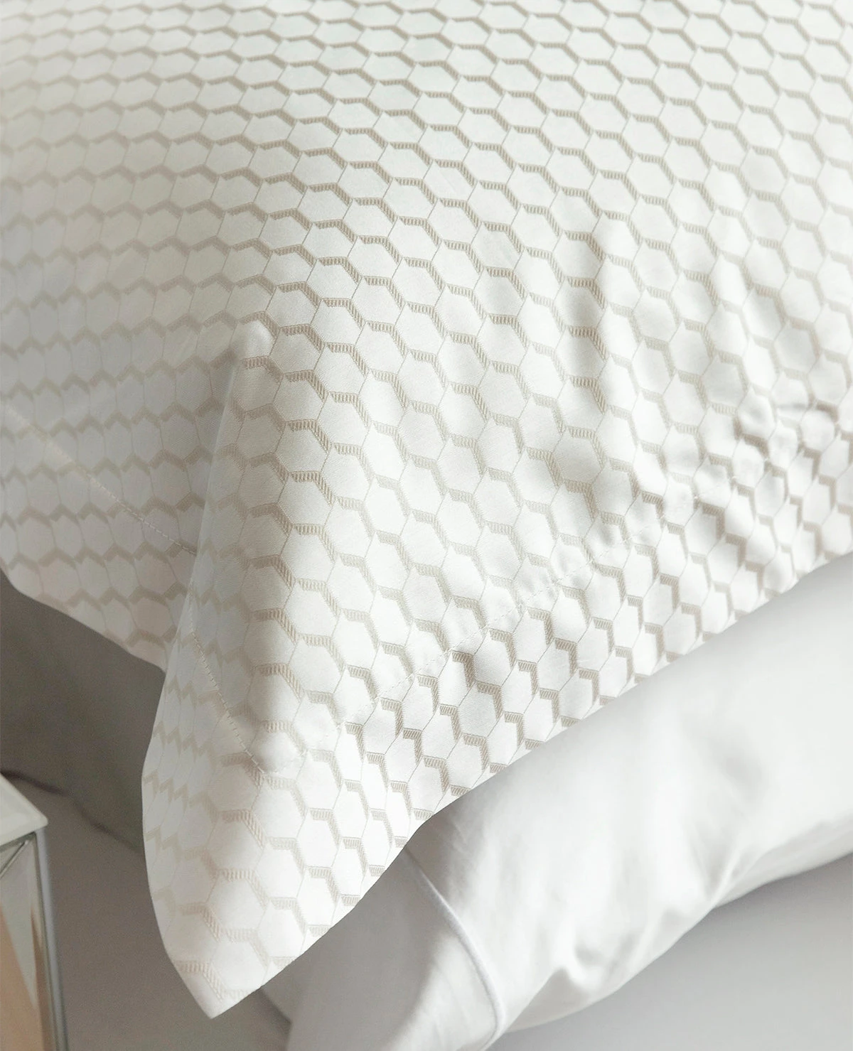 Our Verona jacquard has a simple, modern pattern woven in Italy from the finest quality 100% Egyptian cotton. This stunning, 600-thread count fabric is available in White, Milk and Pearl, and is marvellously versatile.