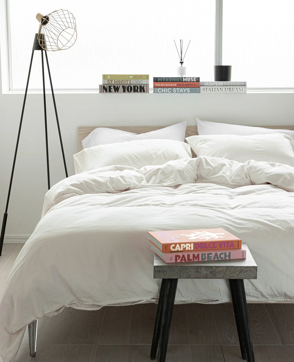 Our Easy Living stone-washed cotton sateen is pre-washed to give a soft-hand and a rumpled, lived-in look, which is super easy to care for. Shown with Atzi Olive Turkish Throw and Manchester Olive cushions.