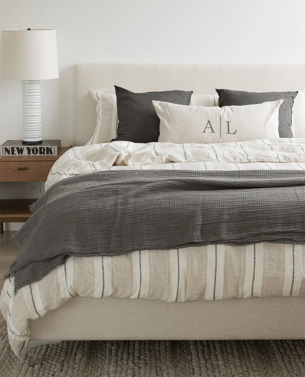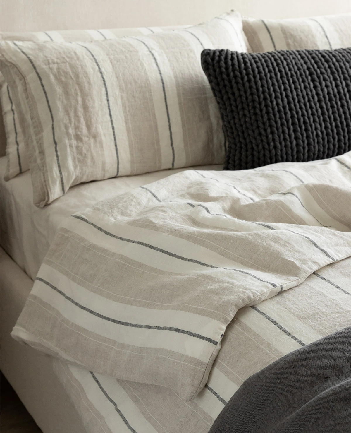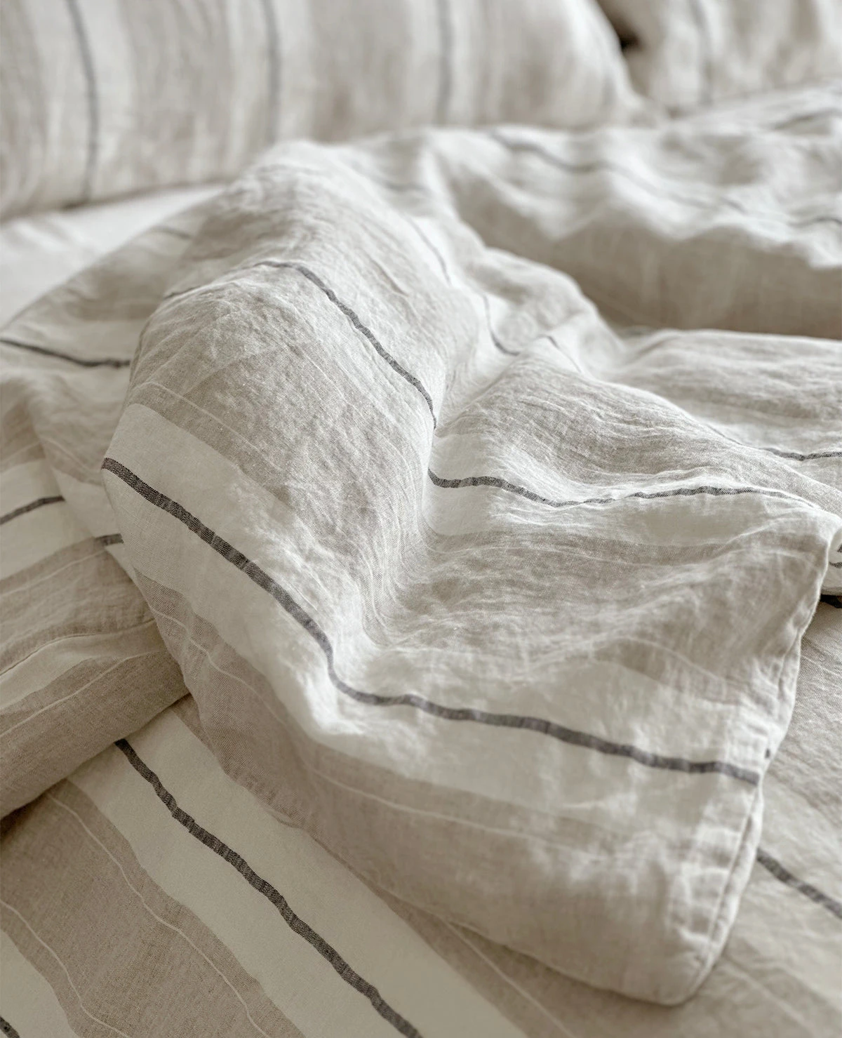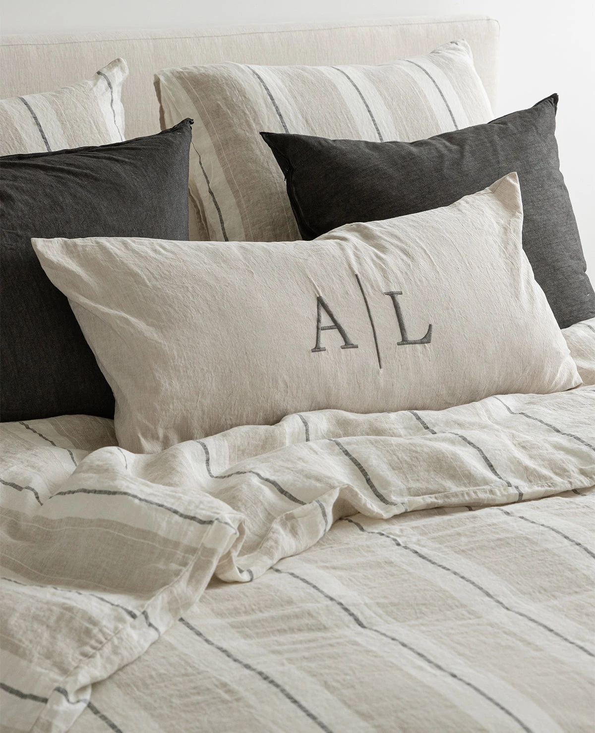 The Lavato striped linen collection is made up of the finest quality Linen that has been pre-washed to create a soft-hand and a rumpled, lived-in look. Made in Portugal from 100% linen. This collection is backordered until June. Pre-orders welcome!