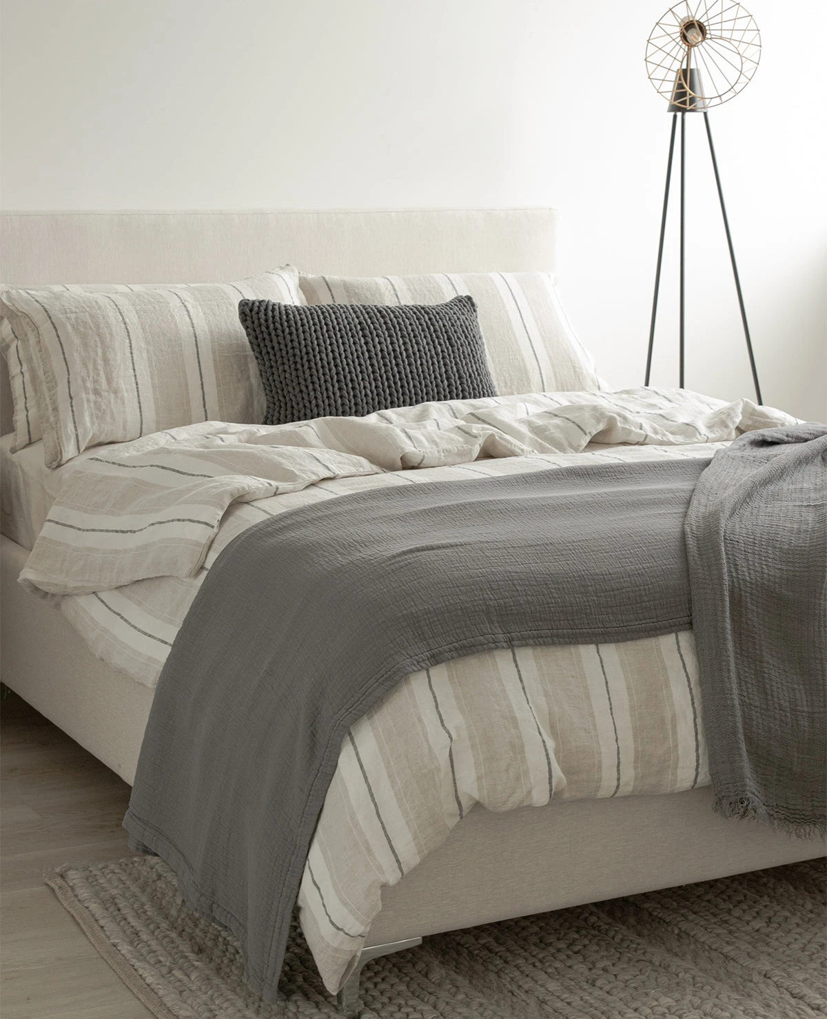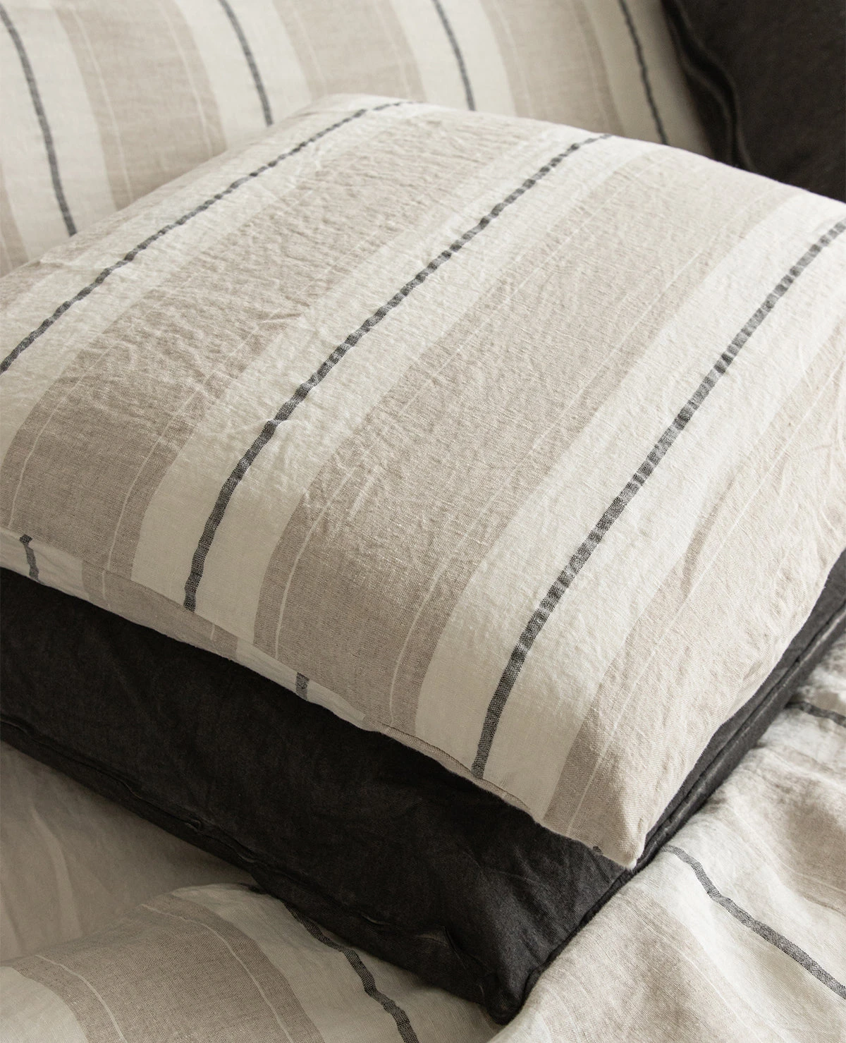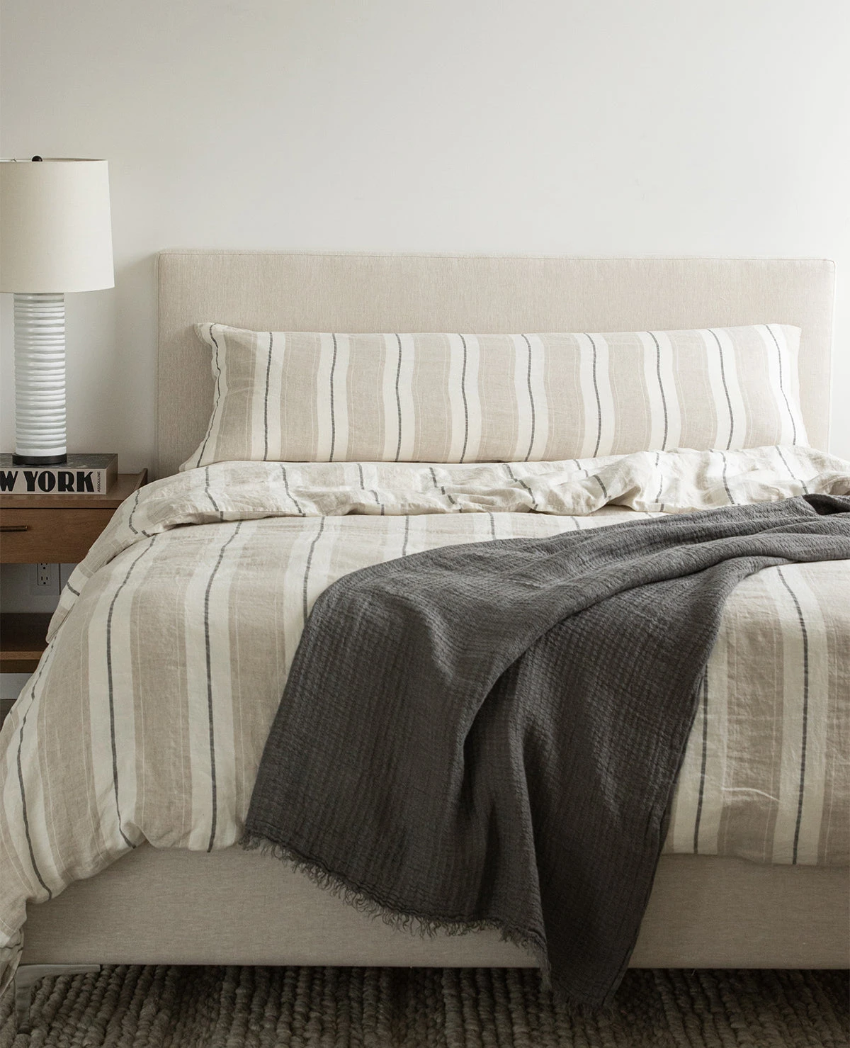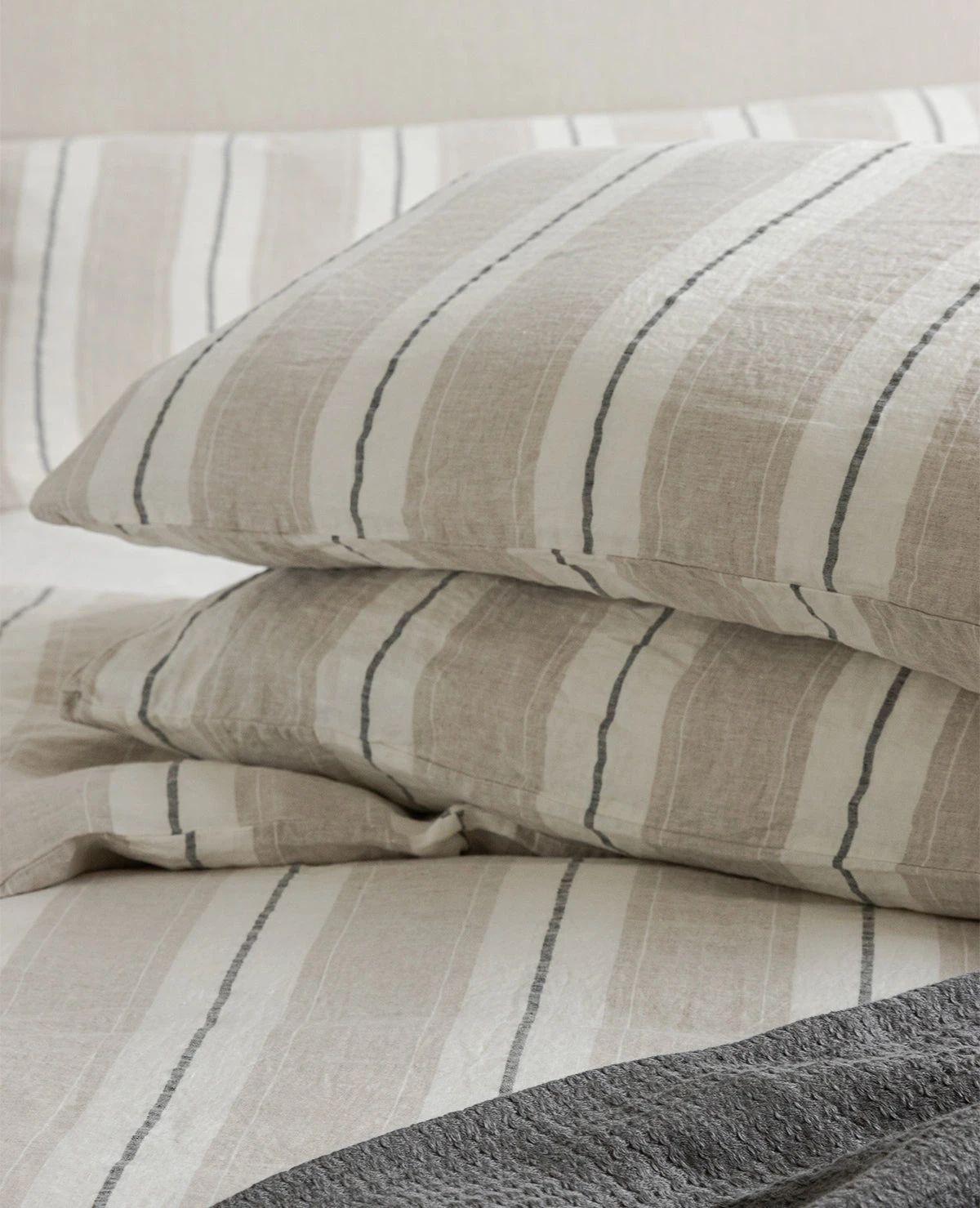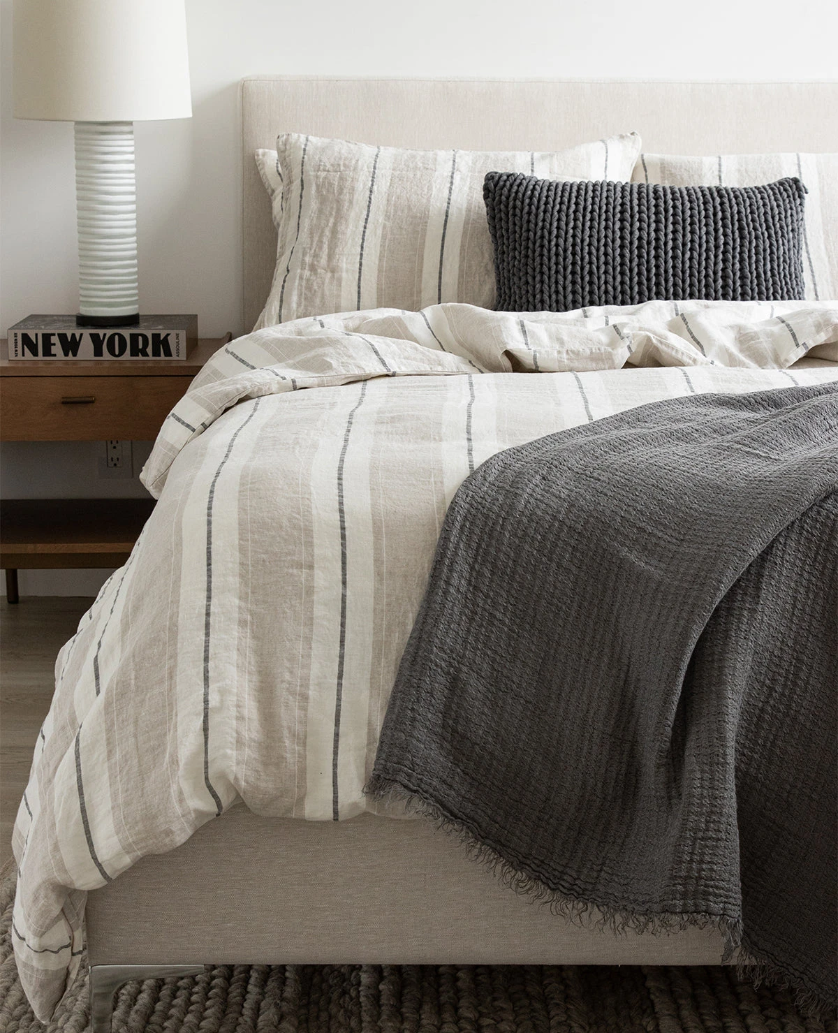 The Lavato striped linen collection is made up of the finest quality Linen that has been pre-washed to create a soft-hand and a rumpled, lived-in look. Made in Portugal from 100% linen. This collection is backordered until June. Pre-orders welcome!